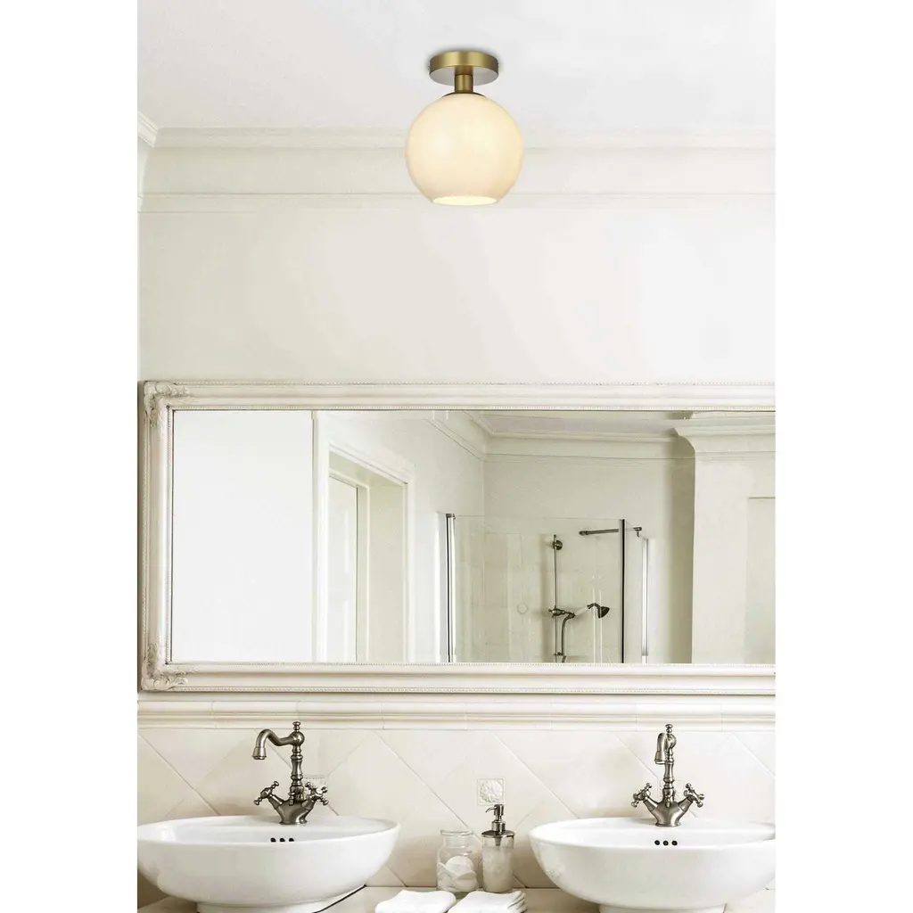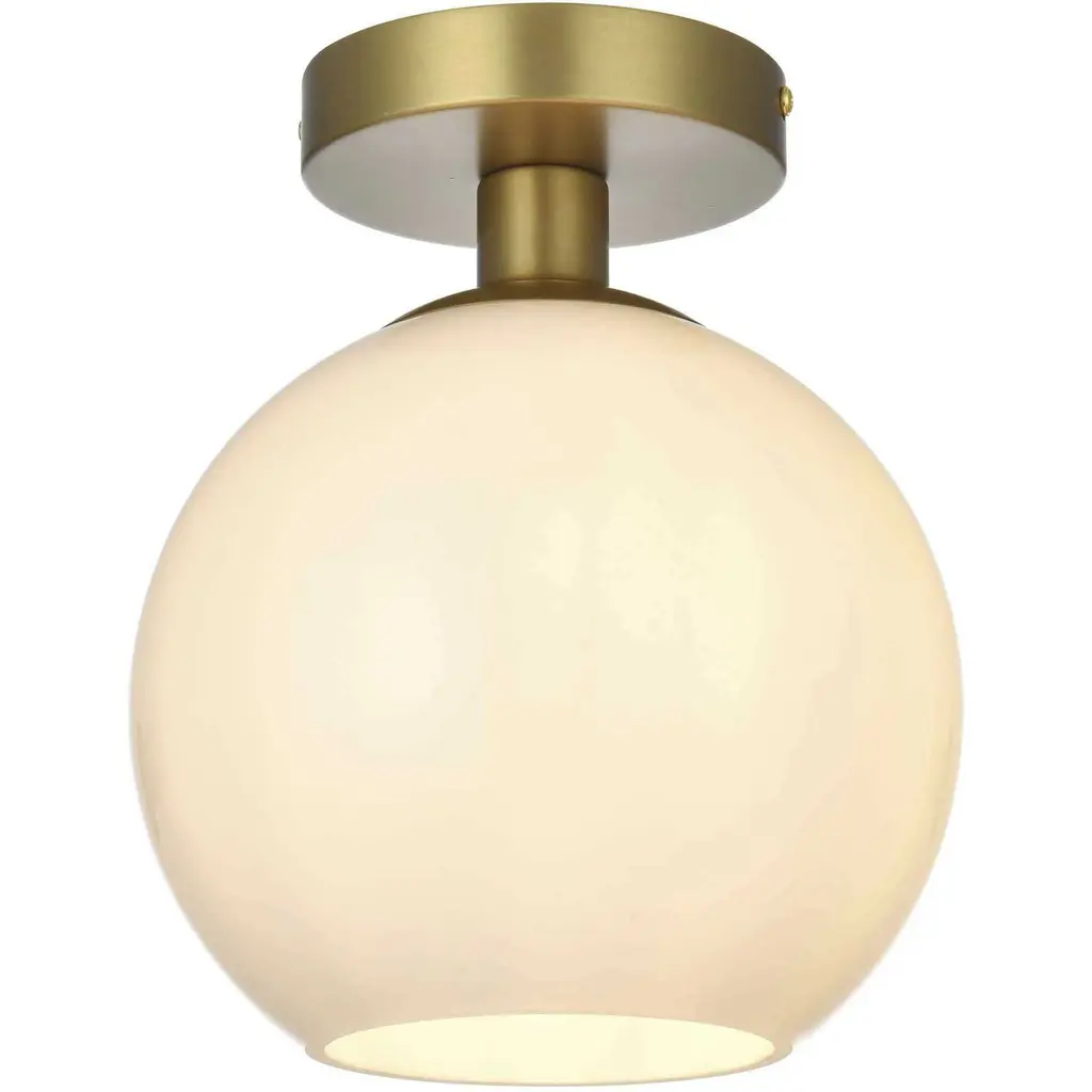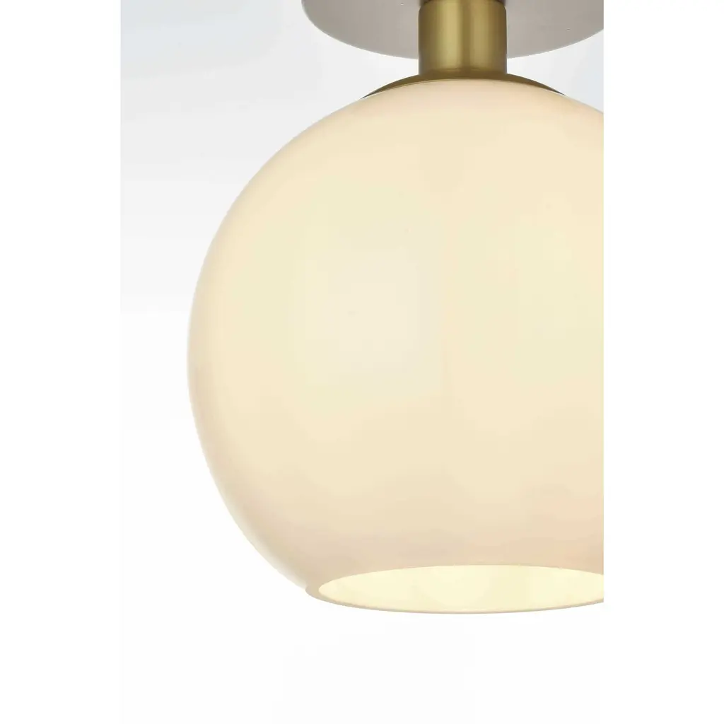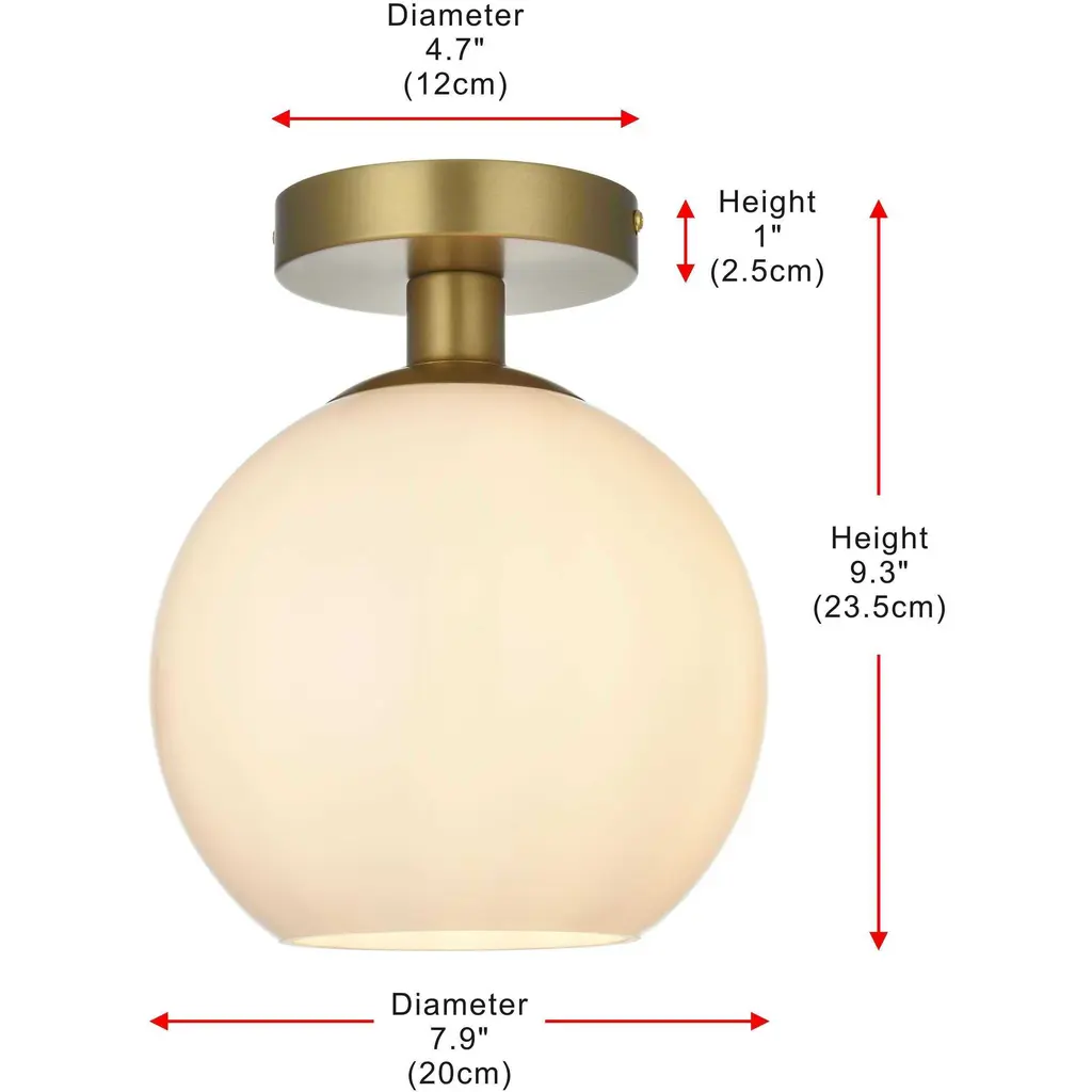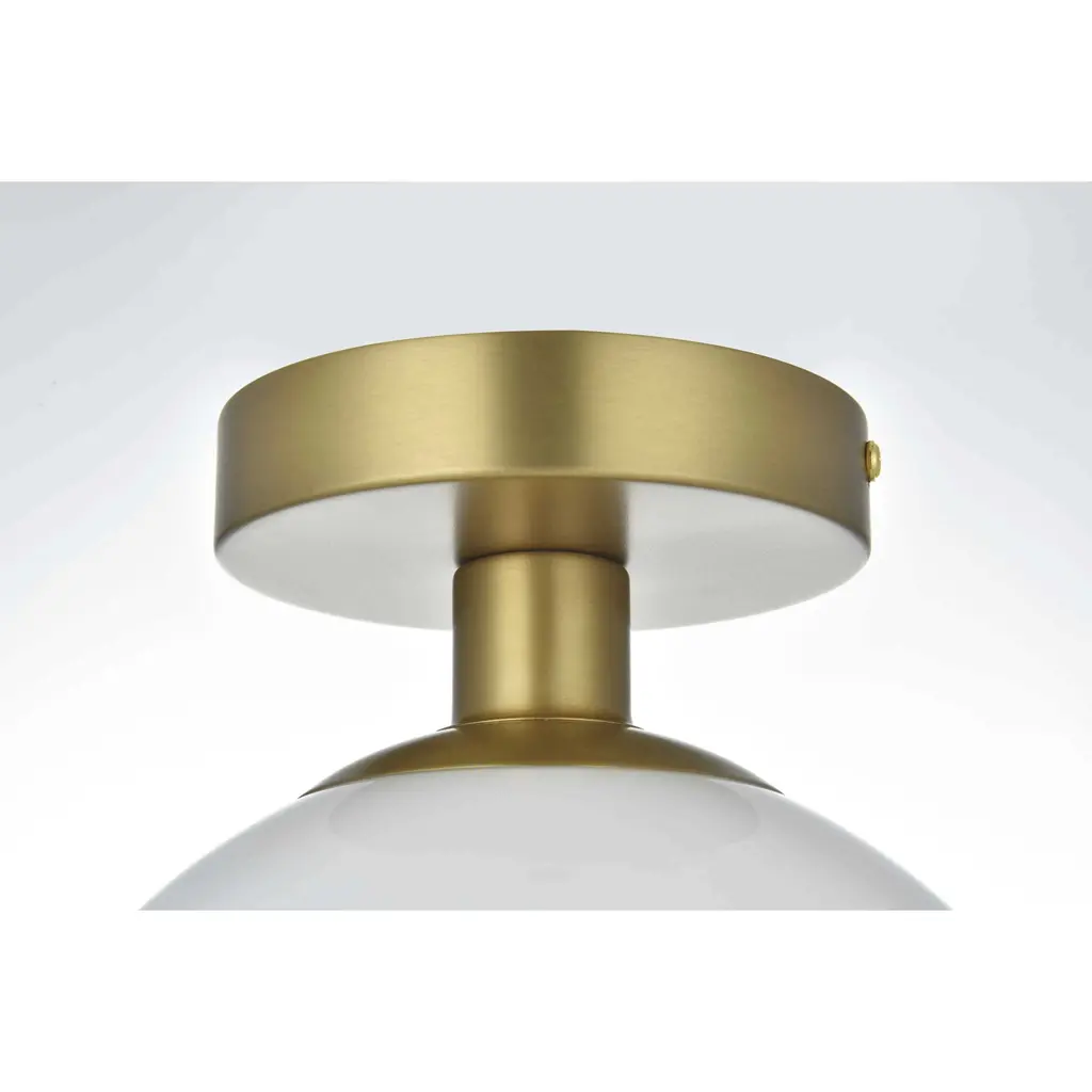 Baxter flush mount ceiling lamps deliver cosmopolitan sophistication through a refined yet practical design, perfect for enhancing any spacewhether it's an entryway, hallway, bathroom, kitchen, or closet. The smooth iron frame features a disk-shaped canopy finished in sleek satin gold, paired with a frosted white spherical glass shade that remains open at the center for effortless bulb replacement. The filament-style bulb (not included) complements the timeless charm. Bringing big-city elegance into your home has never been simpler.