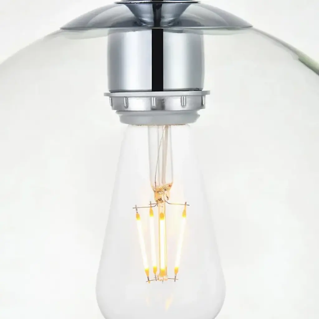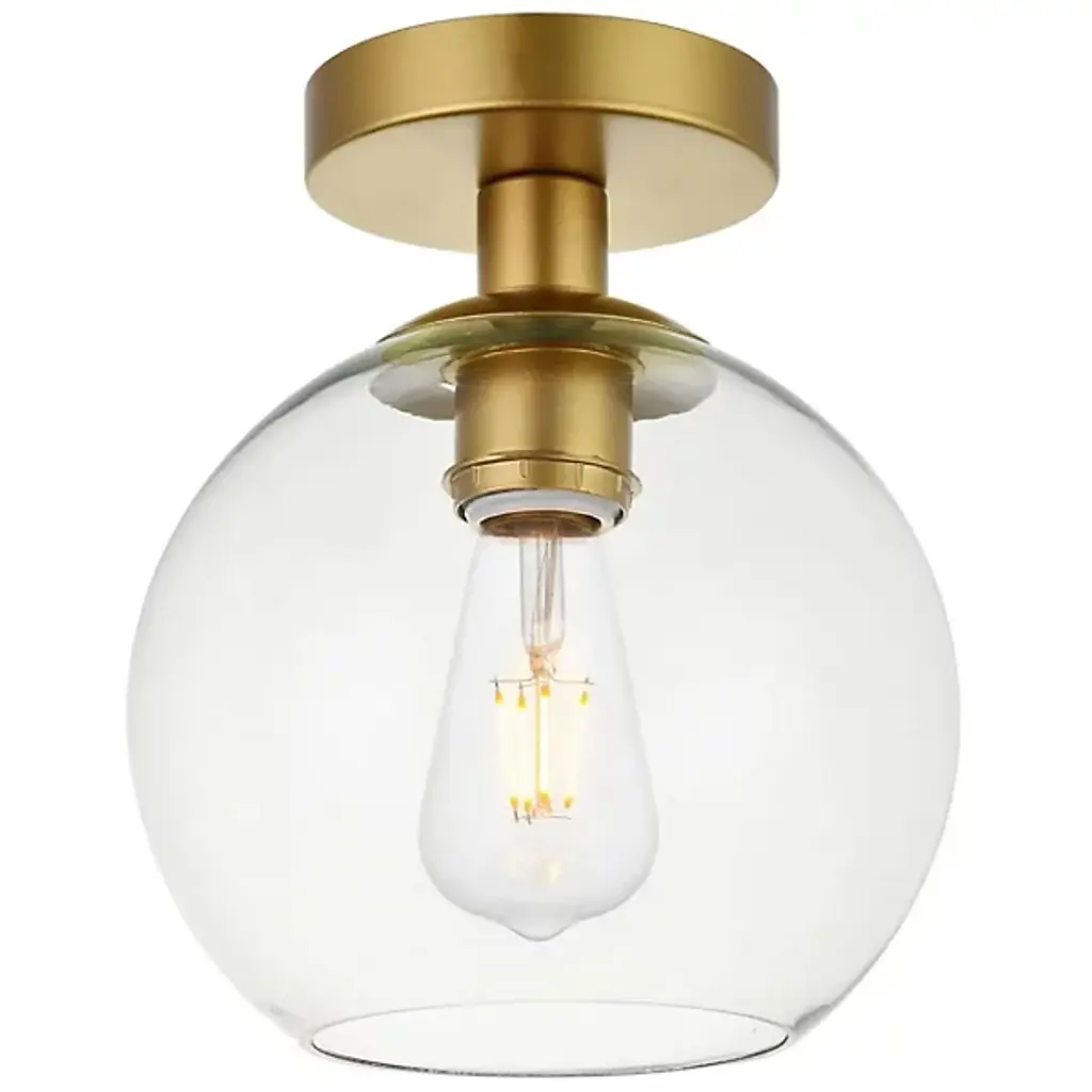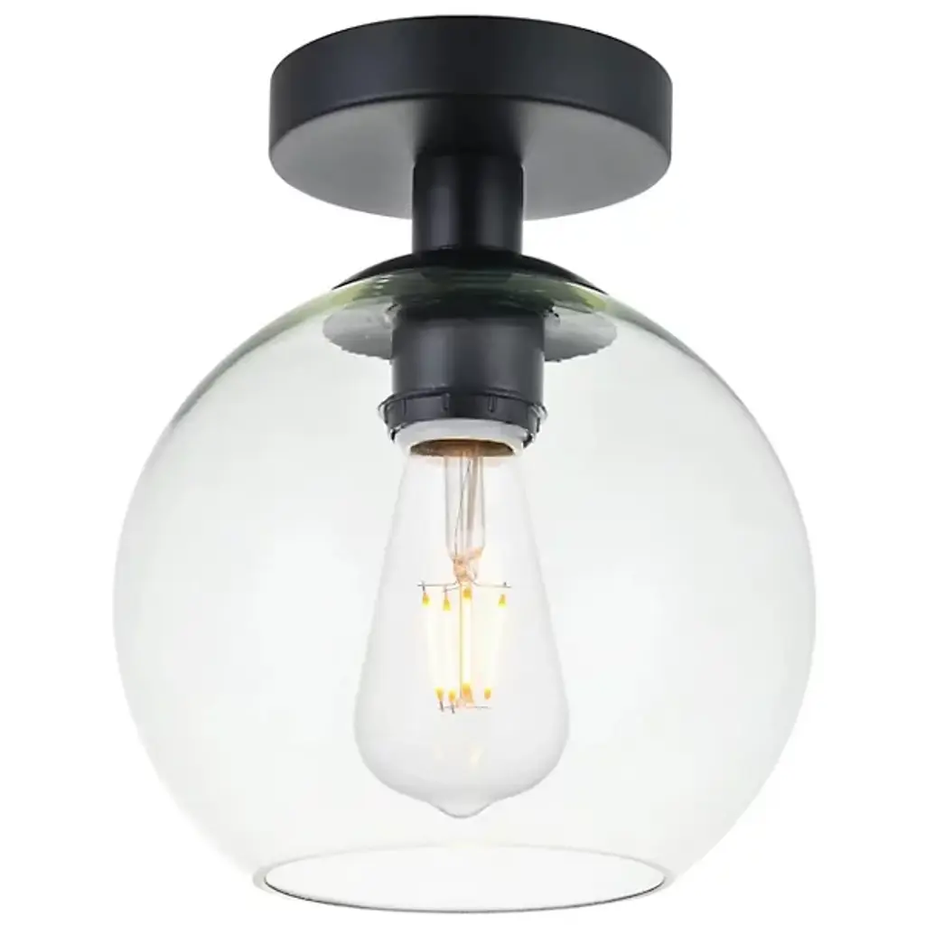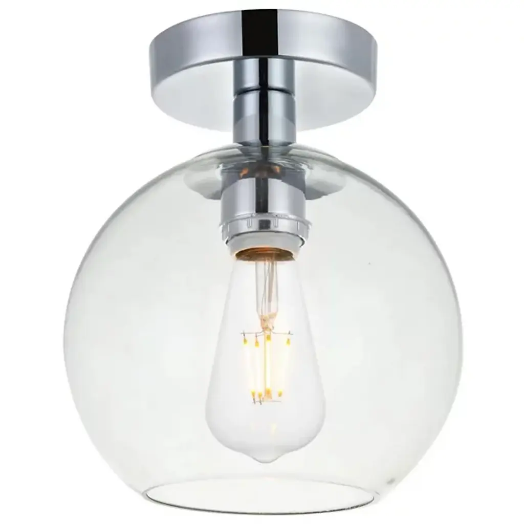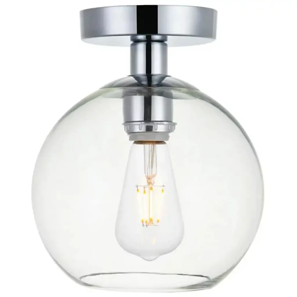 The Baxter Flushmount from Elegant Lighting features a clear glass globe that encapsulates the light source, creating the effect of a luminous orb floating just beneath the ceiling. Metallic accents complement the transparent sphere. Its flush mount configuration makes it an excellent choice for rooms with lower ceilings or areas with a desired sleek profile. The flushmount's dimmable feature allows for easy adjustment of light intensity, making it suitable for a cozy bedroom, a chic entryway, or a minimalist living space.