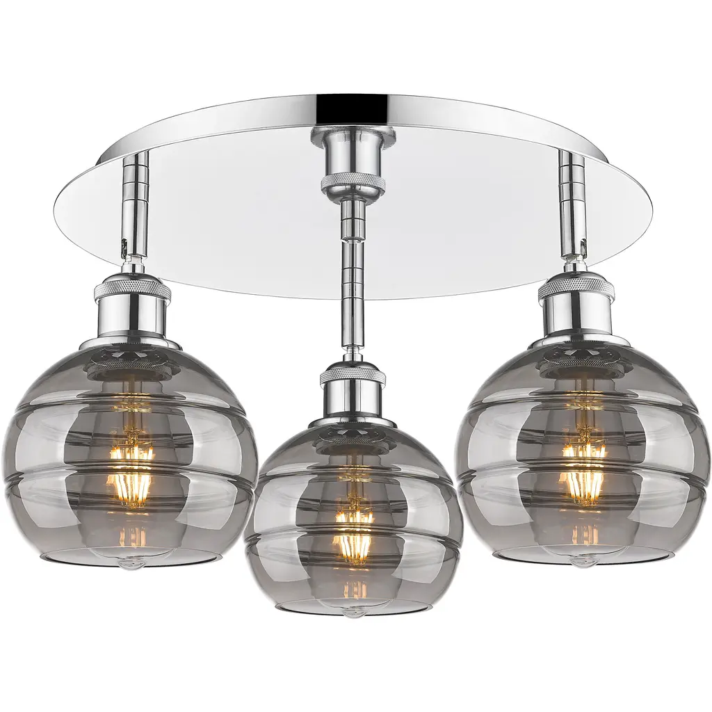 Beacon 3 Light 17.75 Inch Polished Chrome Flush Mount Ceiling Light In Seedy