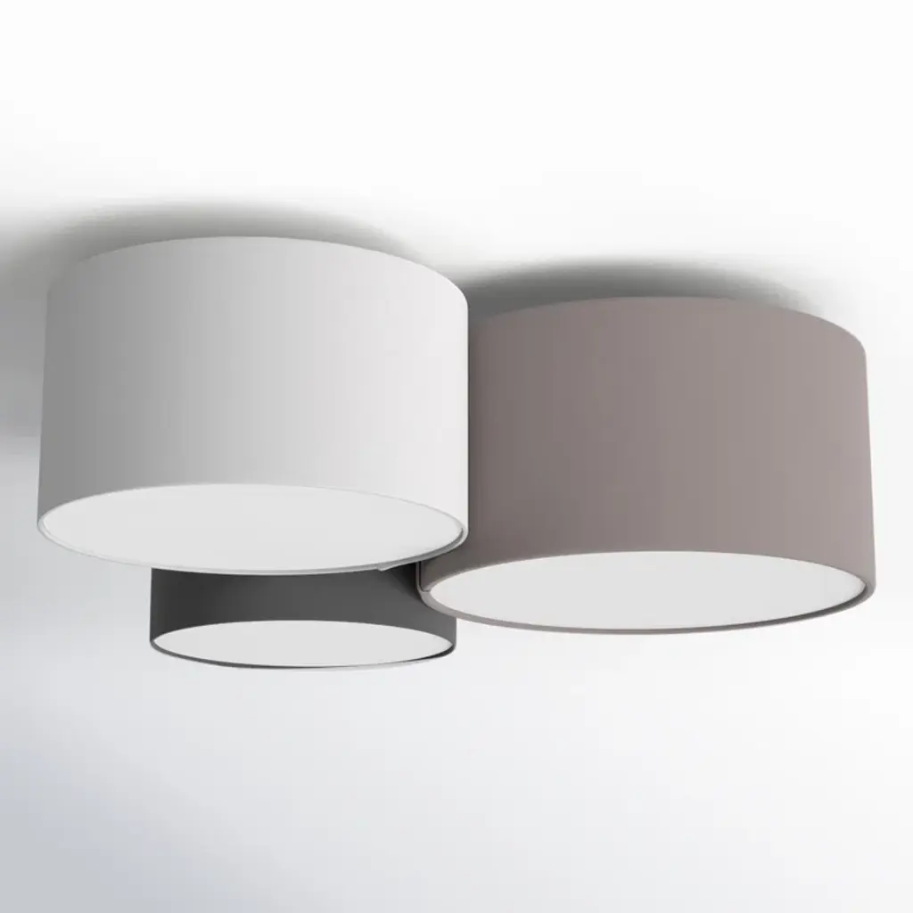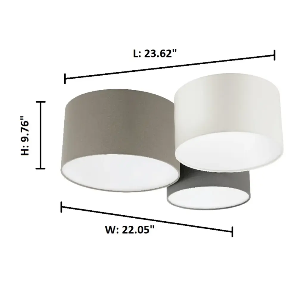 Bold meets mod. This flush mount consists of three round fixtures of different diameters with fabric-wrapped drum shades in neutral hues. Add a dimmer switch to customize the brightness depending on your mood. This eye-catching light is an easy way to add visual interest to a room with a low ceiling.
