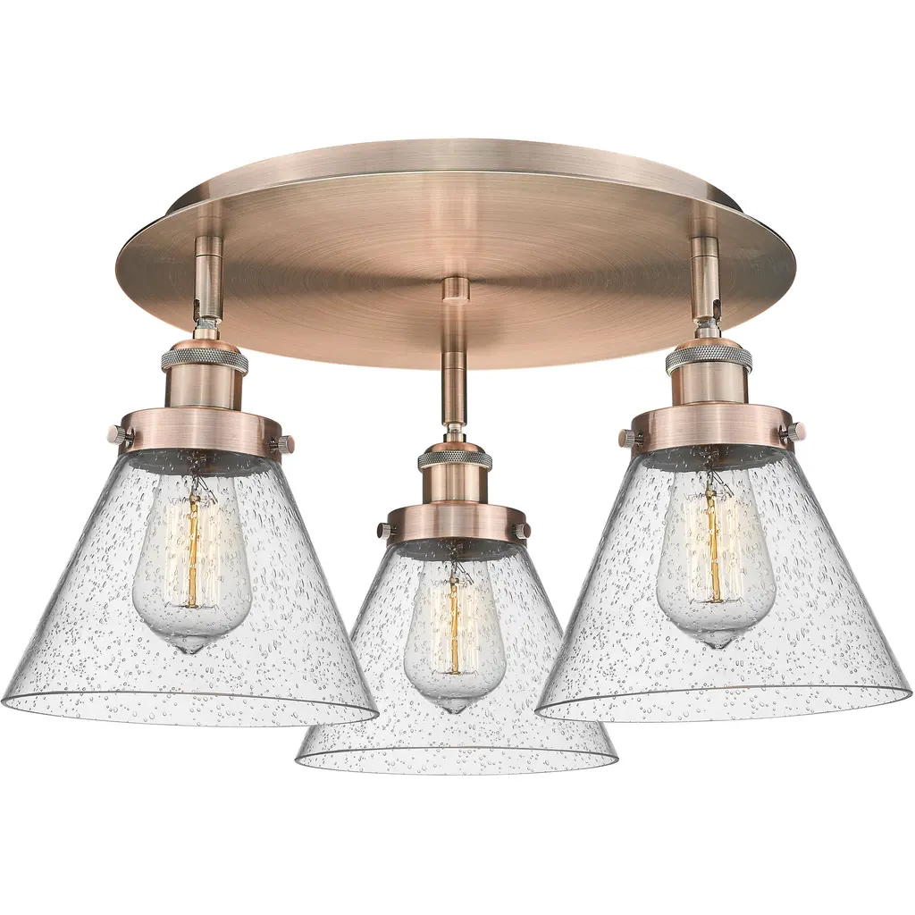 Bell 3 Light 16.75 Inch Antique Copper Flush Mount Ceiling Light In Silver Plated Mercury
