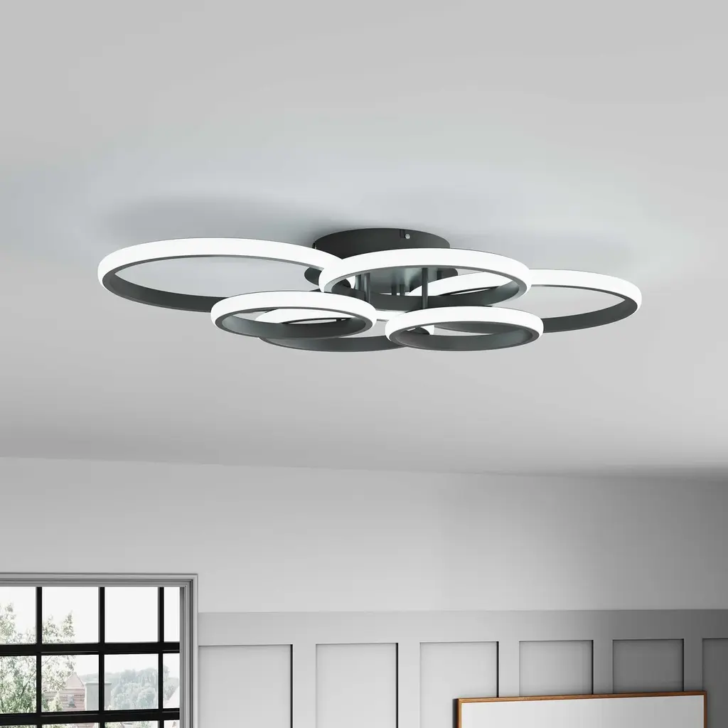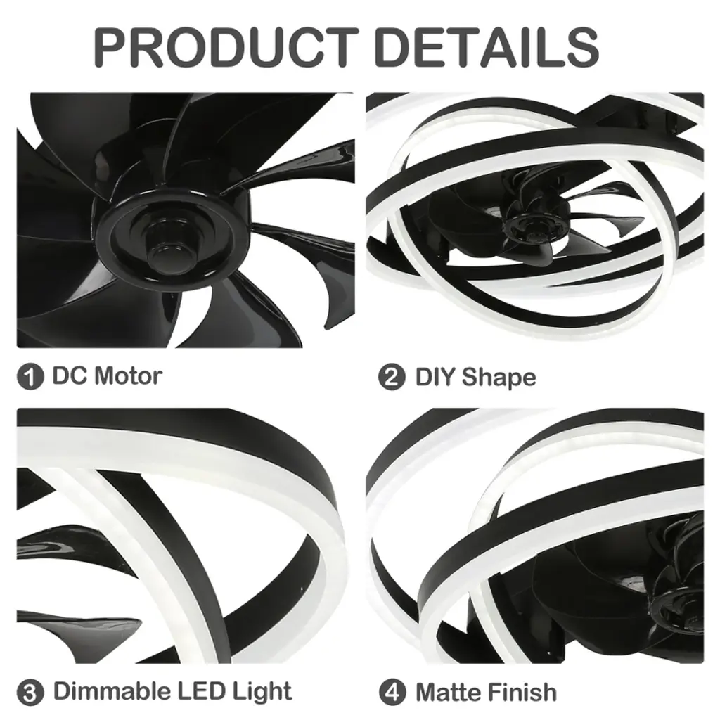 Bella Depot 24" Modern Black Flush Mount Ceiling Fan With Dimmable Light, 6-speed Reversible With Remote And App Control