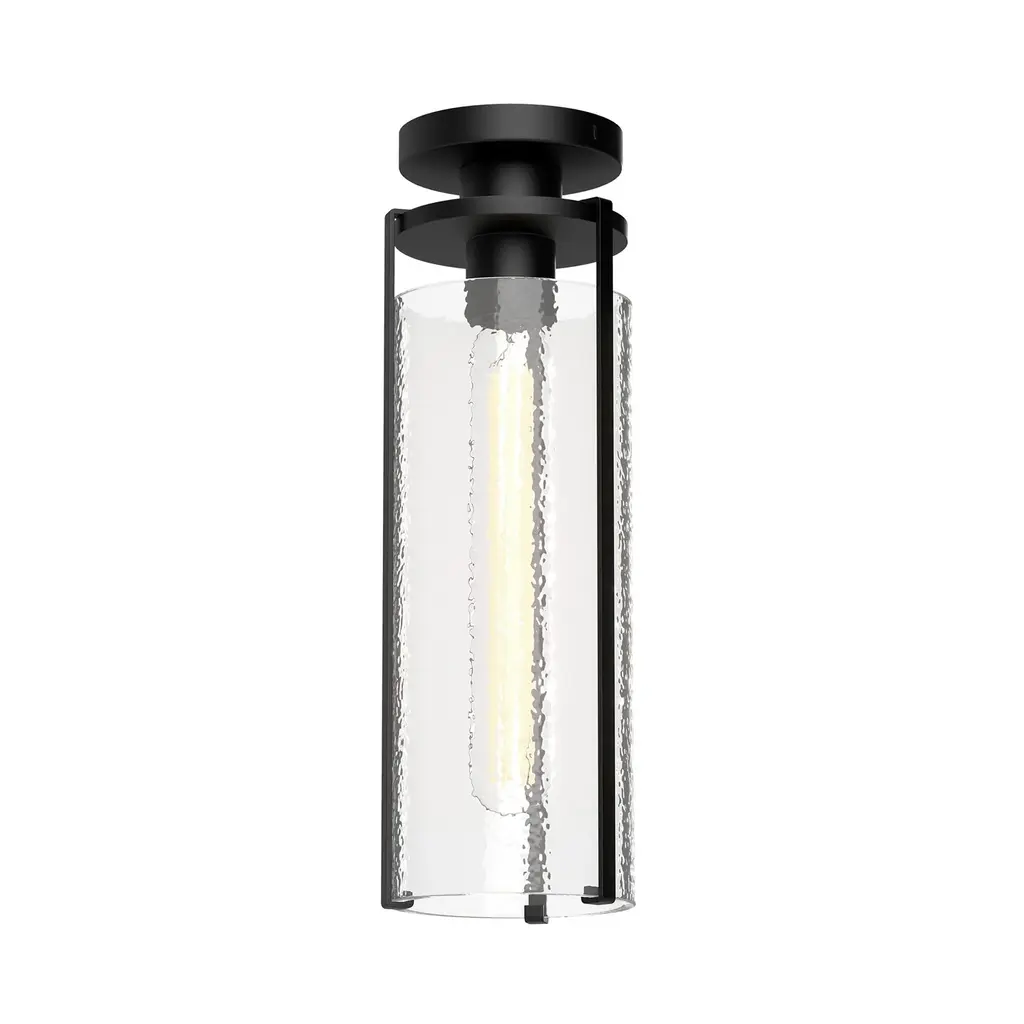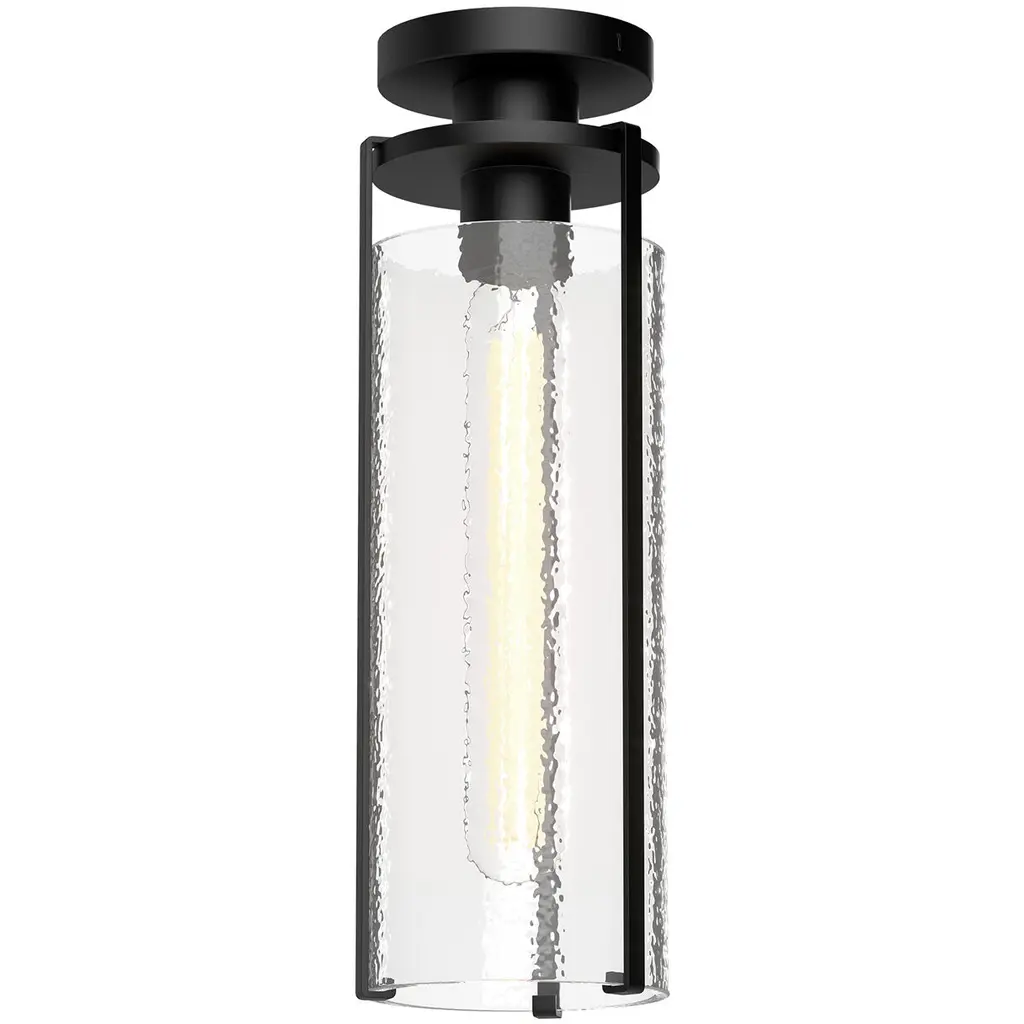 Smooth, stylish, and stylishly layered. The Belmont Flushmount from Alora Mood enhances its surroundings with an elegant openness. A twin disc structure forms the central element of the fixture, relying on a round canopy and central, downward-facing socket to support a slender circular hub that holds the fixture’s shade. This shade structure pairs thin metal brackets that extend down from the sides, holding a cylinder shade of water glass around the vintage-style lamping, and extending a pleasing spread of soft, even light around the fixture.