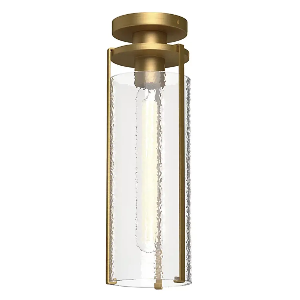Smooth, stylish, and stylishly layered. The Belmont Flushmount from Alora Mood enhances its surroundings with an elegant openness. A twin disc structure forms the central element of the fixture, relying on a round canopy and central, downward-facing socket to support a slender circular hub that holds the fixture’s shade. This shade structure pairs thin metal brackets that extend down from the sides, holding a cylinder shade of water glass around the vintage-style lamping, and extending a pleasing spread of soft, even light around the fixture.