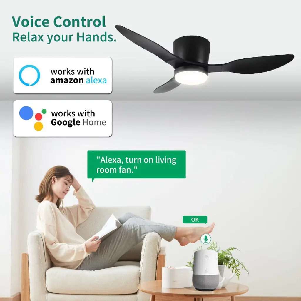 Bestparts 42" Smart Ceiling Fan With Light, Remote, Wifi, Alexa, Dc Motor, Flush Mount, Black Blades
