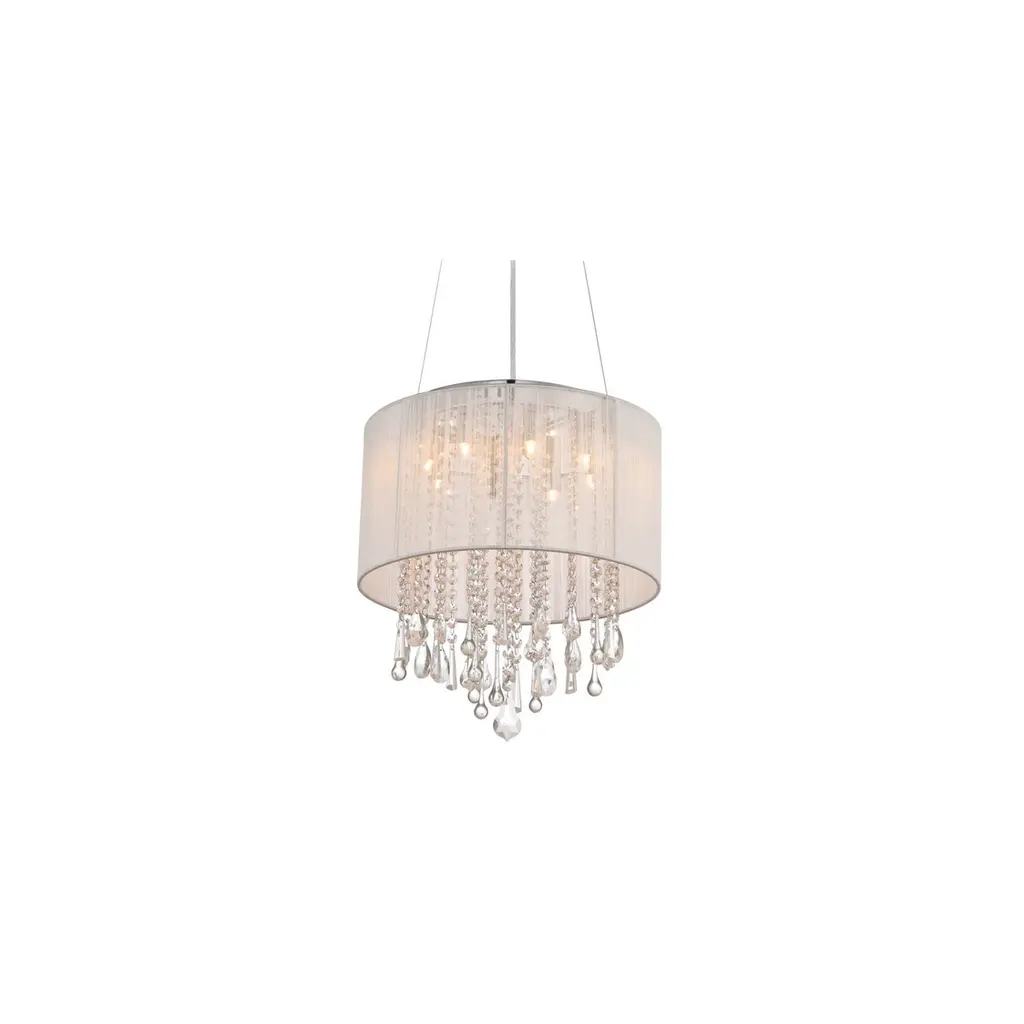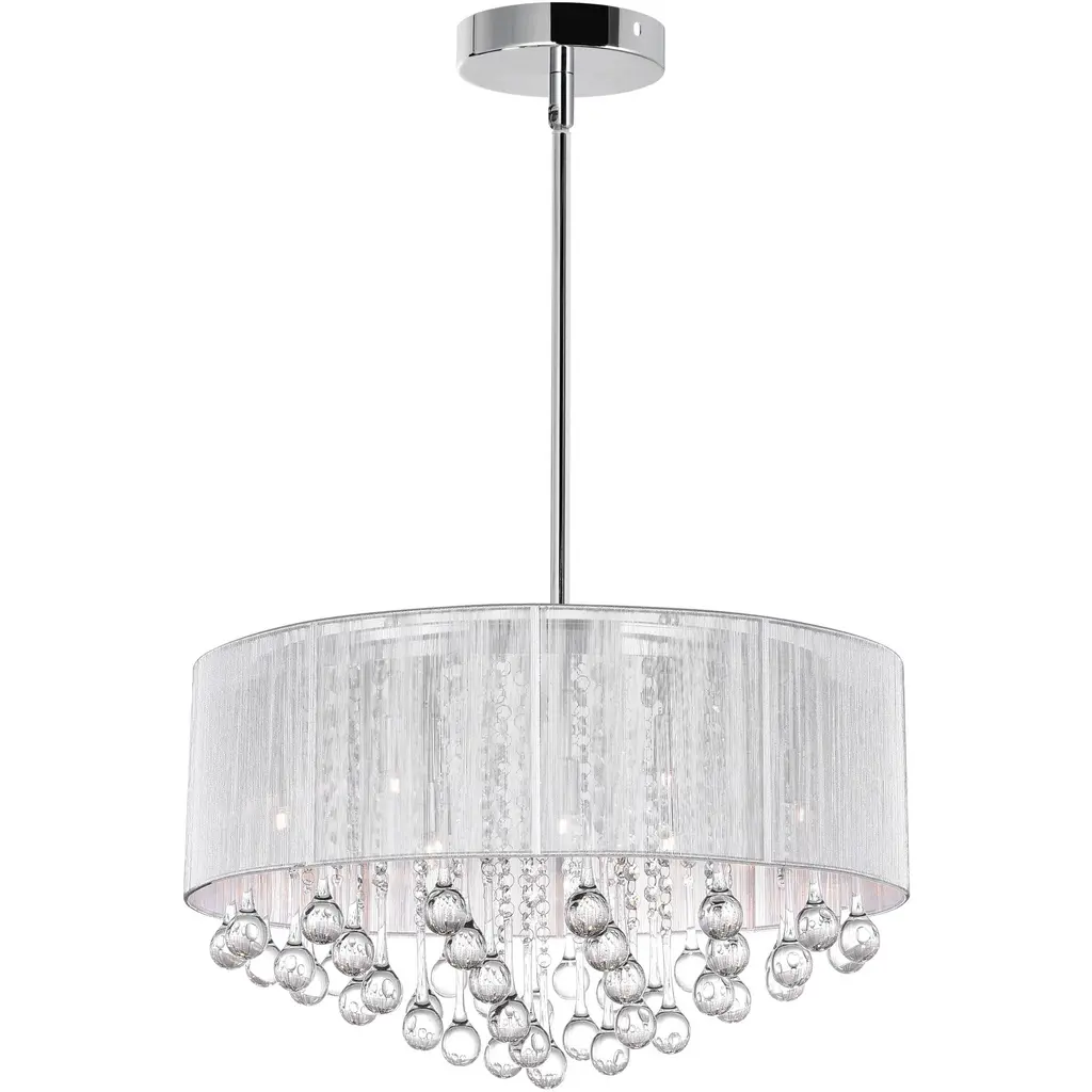 Bring a dramatic focal point to any area of your home with the unique round Beverly Dr. collection convertible ceiling mount's stunning style. Cut and polished crystals are held in place with stainless-steel rings and illuminated by brilliant halogen points of light and graced by a beautiful silk string shade.