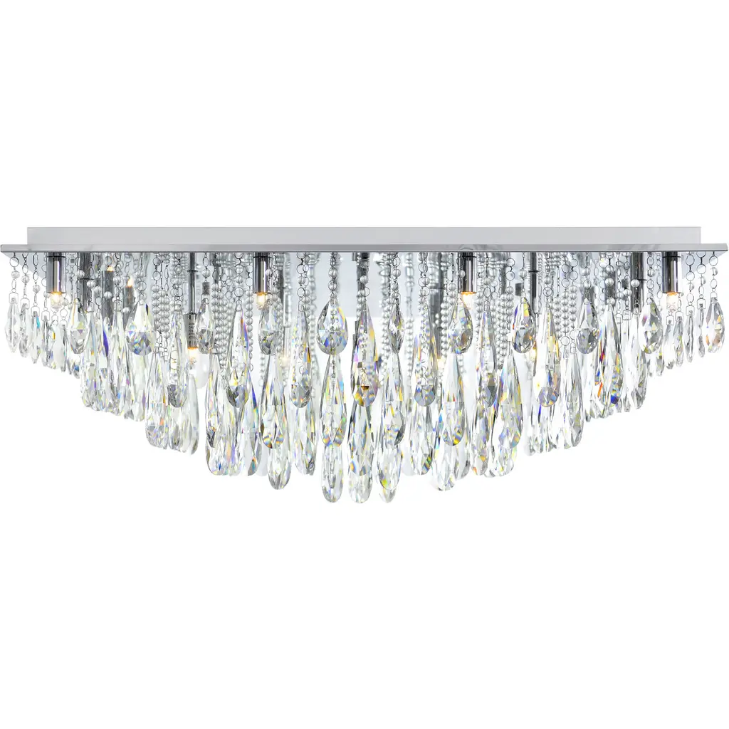 Make a style statement with the Bianca 20 Light Flush Mount. This glittering light source features a square ceiling plate in chrome decorated with dangling crystals. The elaborate design of each crystal drop looks impressive when lit or not. This glam light is what you need if you want to give your space a luxurious vibe without having to spend a fortune.