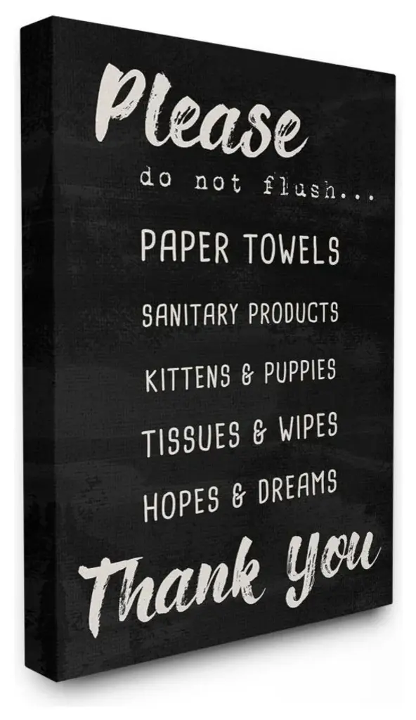 Black And White Please Do Not Flush Hopes And Dreams Brush, Framed, 16"x20"