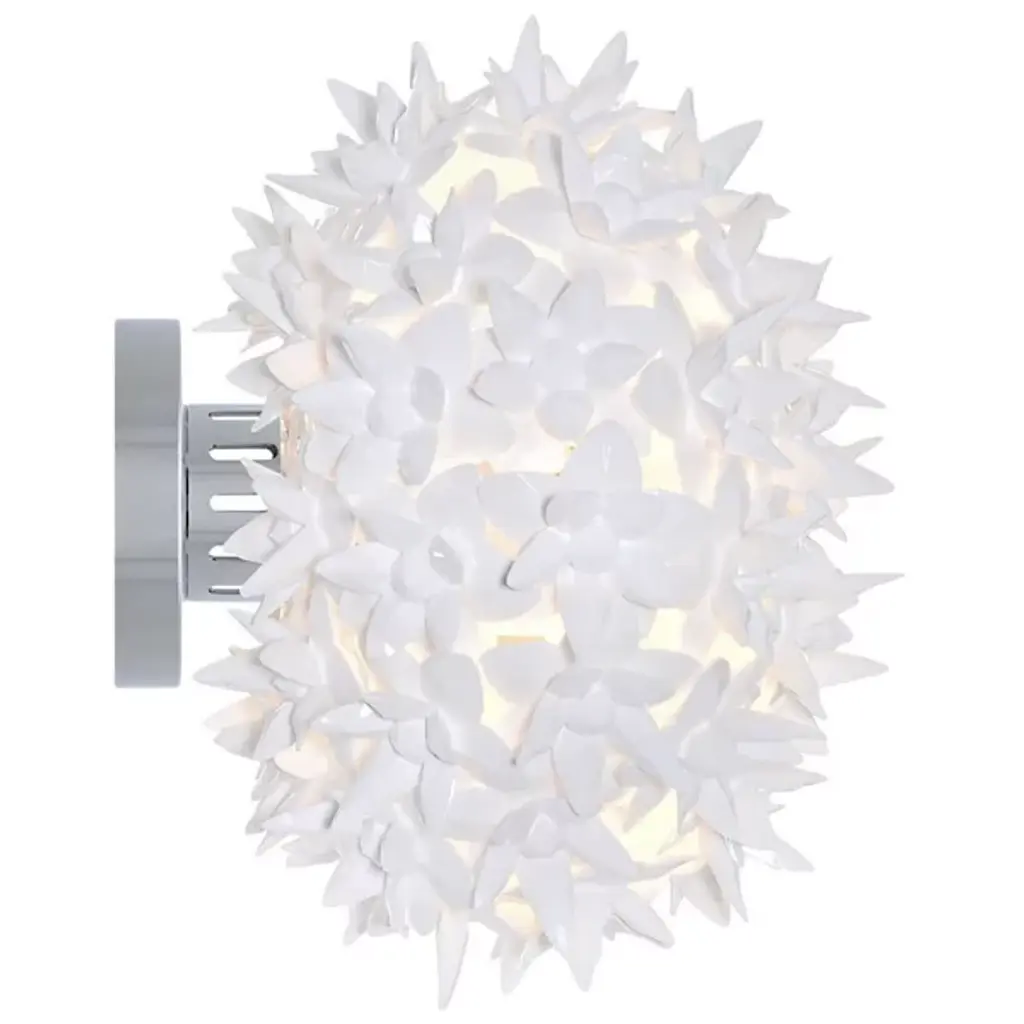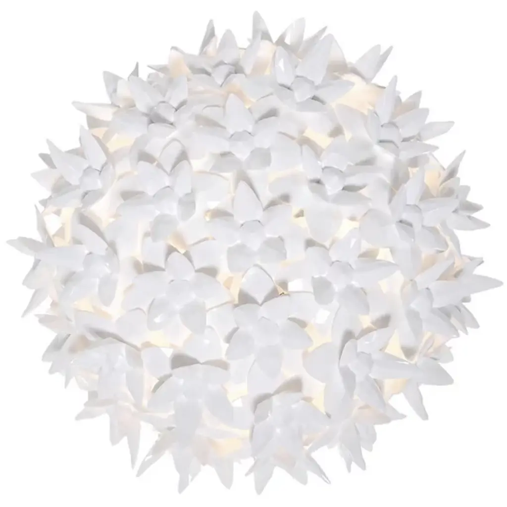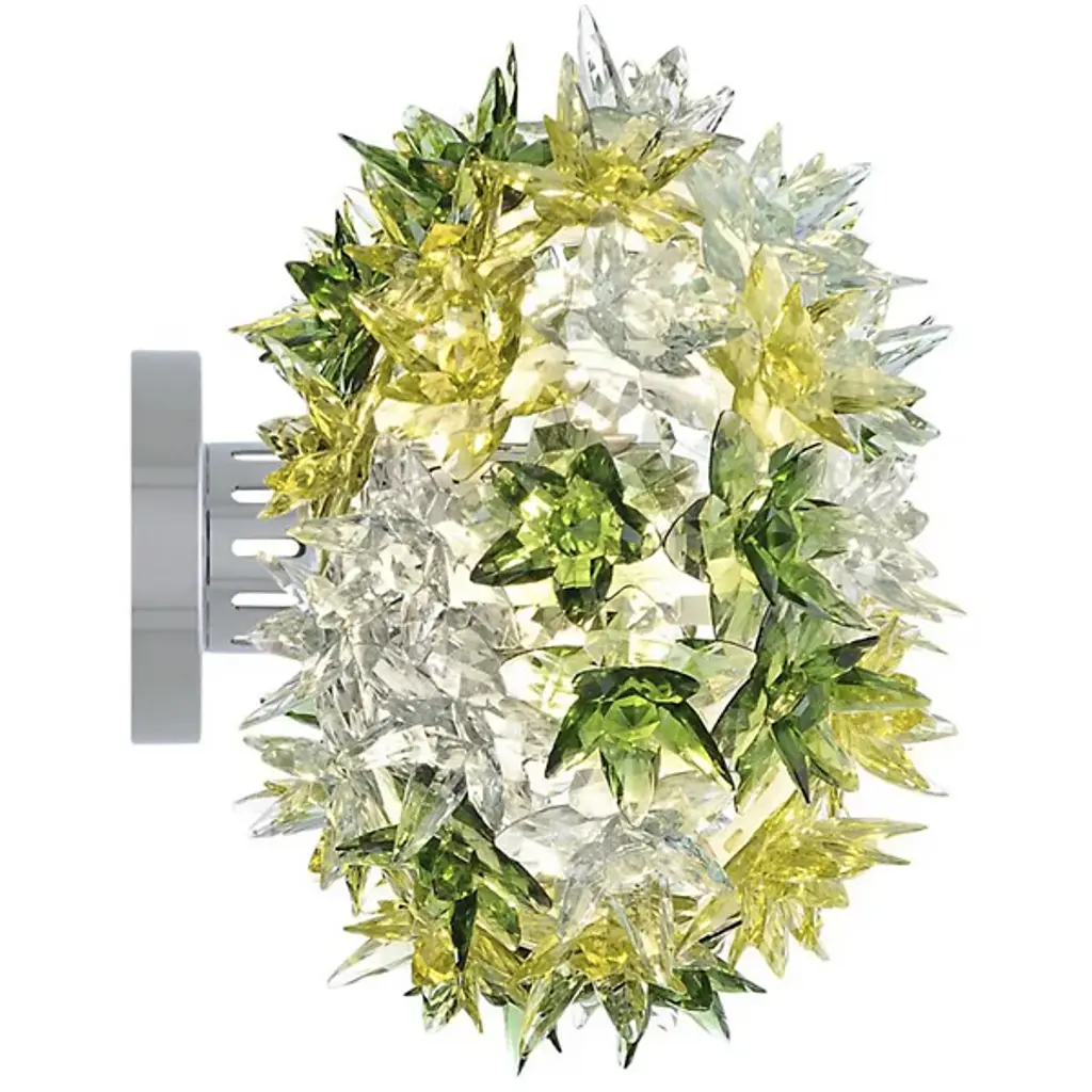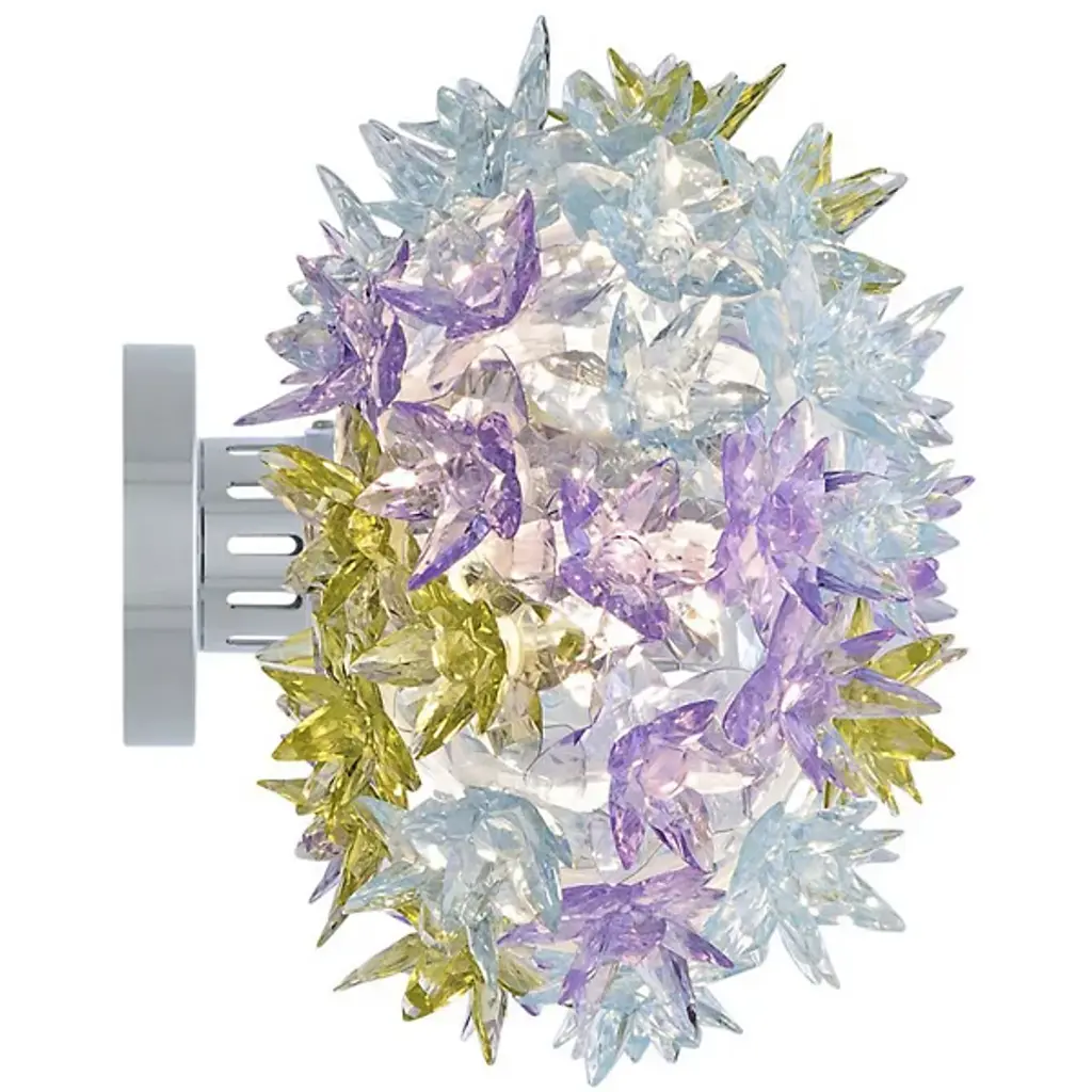 The Kartell Bloom Wall / Flushmount a blossoming bouquet of detailed polycarbonate flowers, putting forth a sparkling array of ambient light that can flourish year round in your home. Individual flowers are tightly bundled together in a circular formation, coming together as a sharply styled diffuser that fully encloses the light sources. The metal structure holds the fixture slightly below the ceiling or from the wall, allowing the vibrant refractions and overall ambient light to shine fully against surfaces and around the room.
