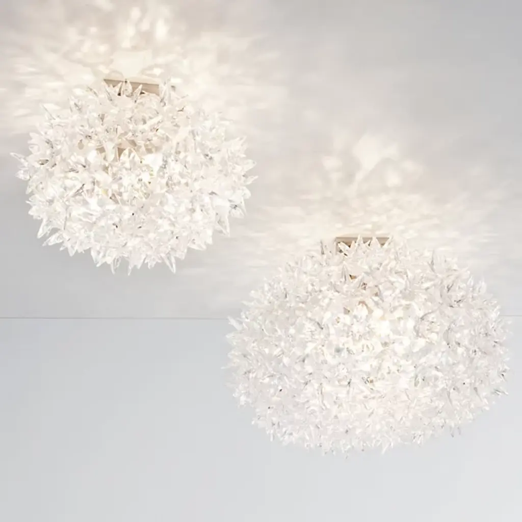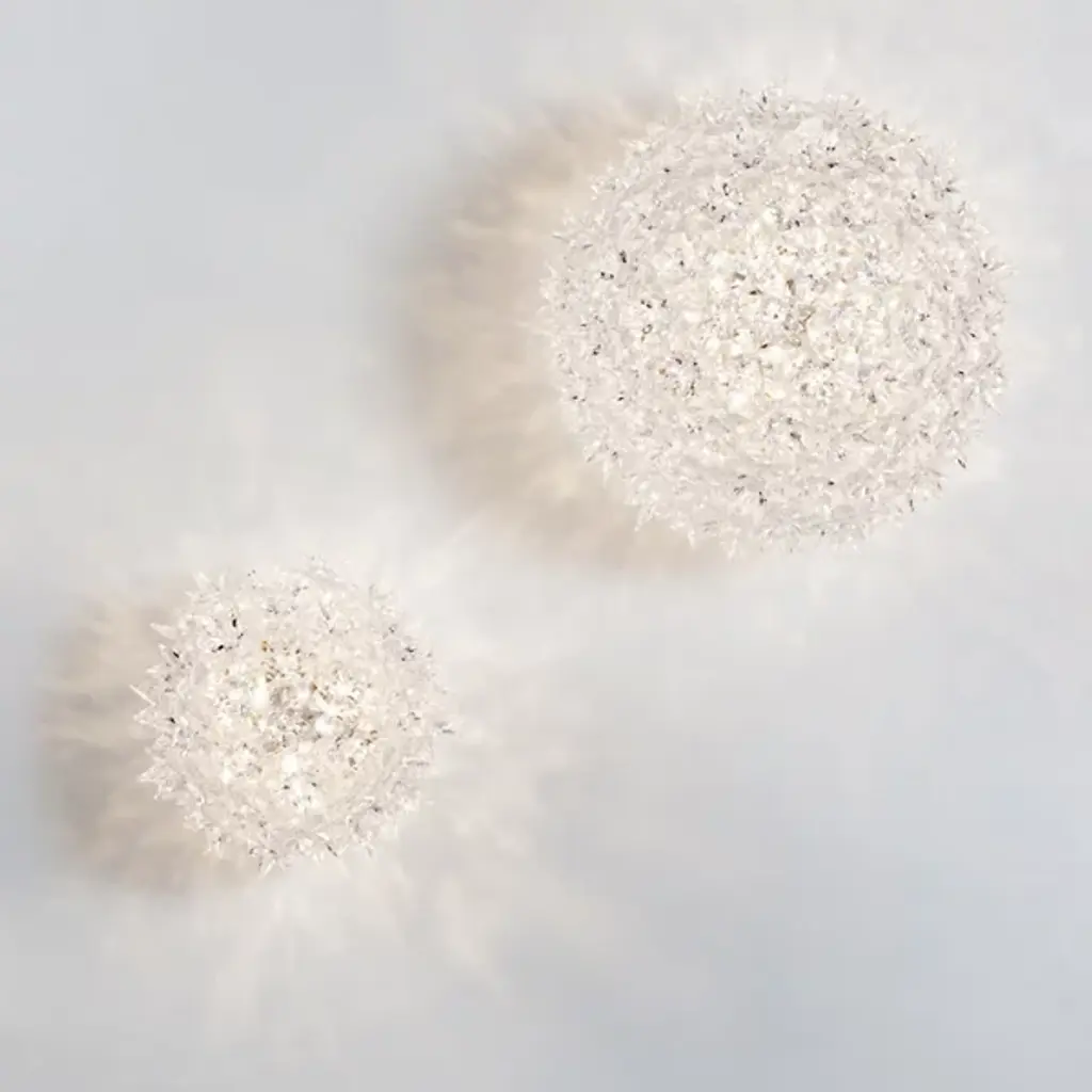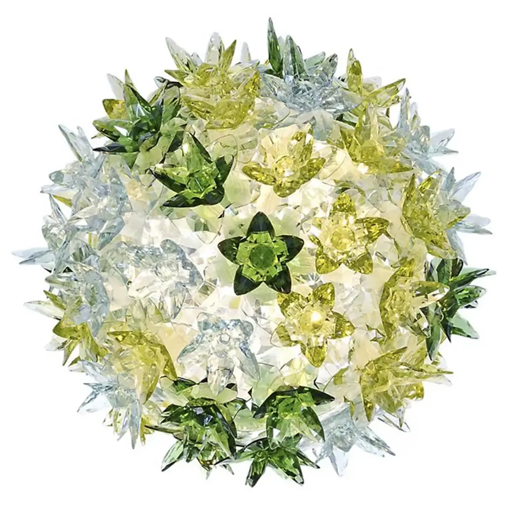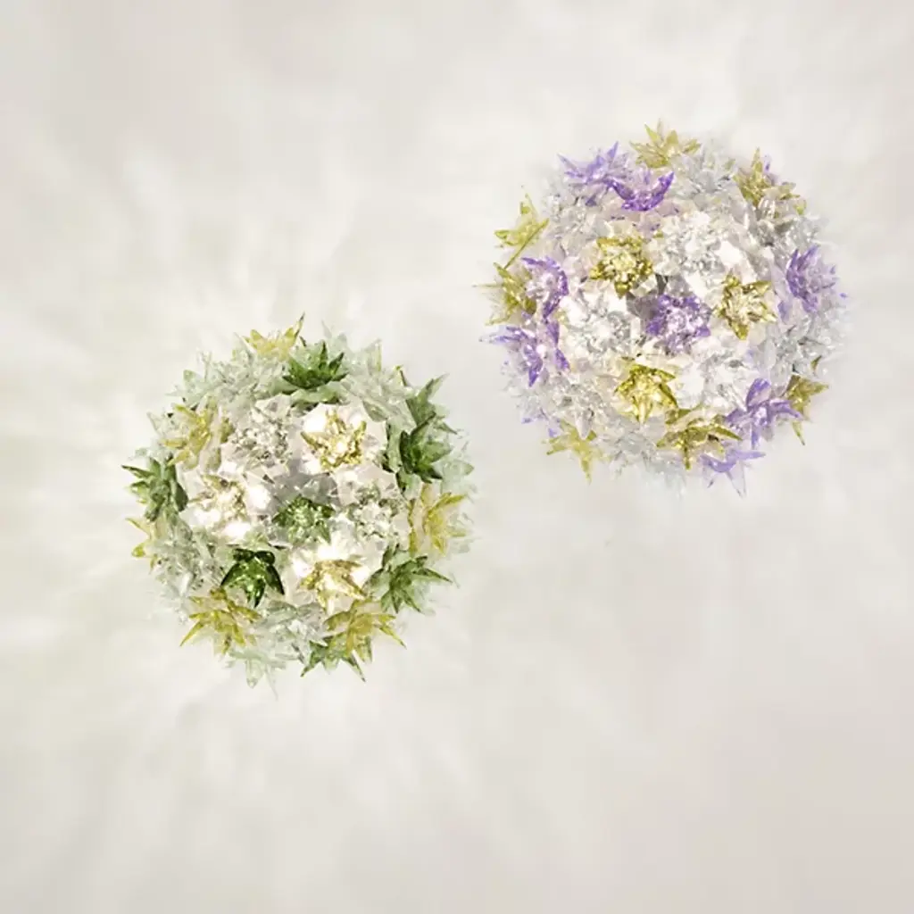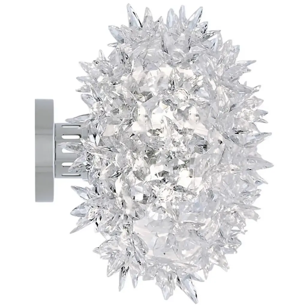 The Kartell Bloom Wall / Flushmount a blossoming bouquet of detailed polycarbonate flowers, putting forth a sparkling array of ambient light that can flourish year round in your home. Individual flowers are tightly bundled together in a circular formation, coming together as a sharply styled diffuser that fully encloses the light sources. The metal structure holds the fixture slightly below the ceiling or from the wall, allowing the vibrant refractions and overall ambient light to shine fully against surfaces and around the room.