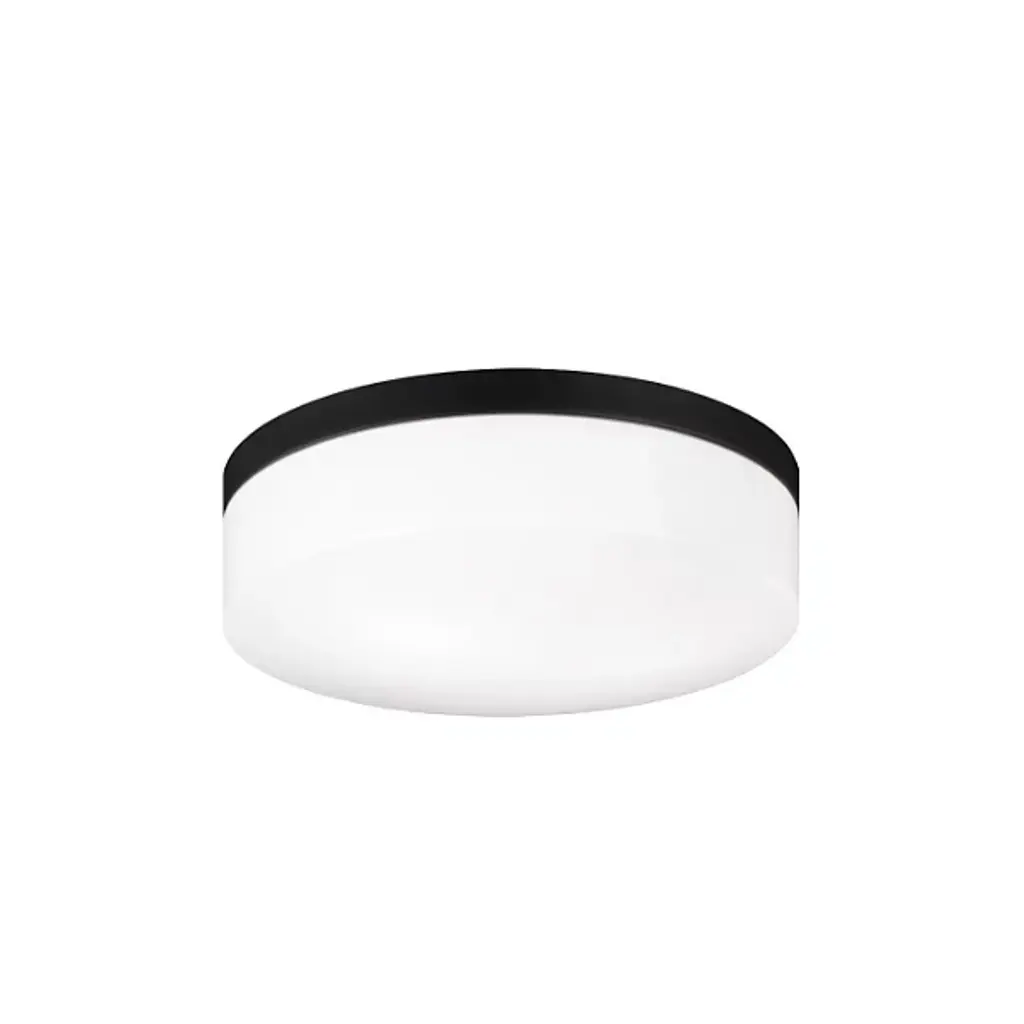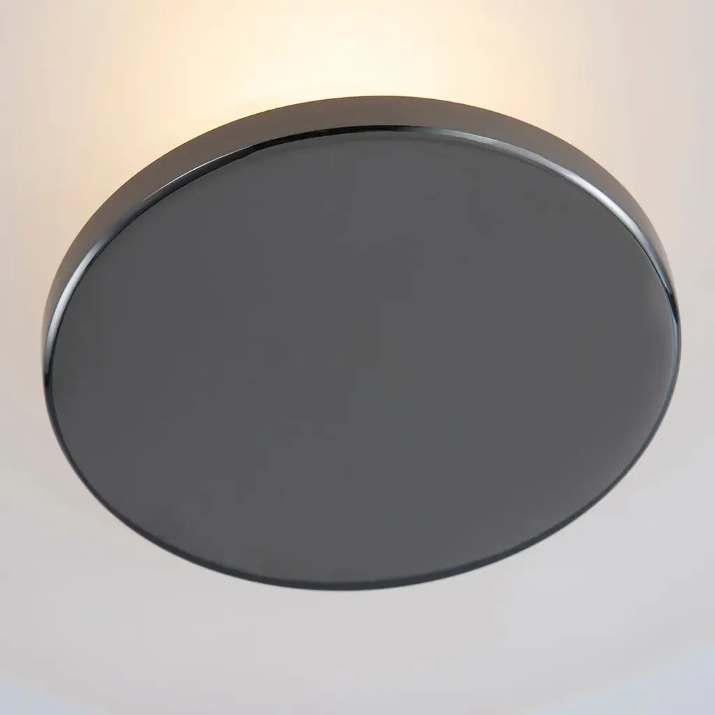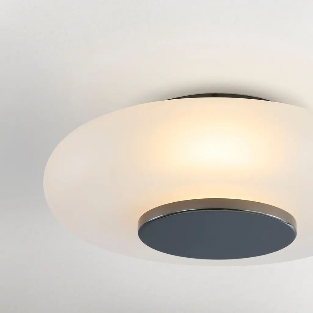 Blyford's sleek and minimal design has an orbit-like quality that draws the eye around and around. The clear etched glass is accented by streamlined metalwork, bringing a simple sophistication to the ceiling.