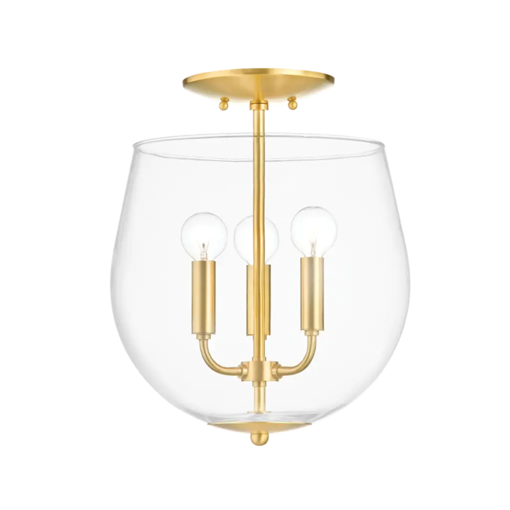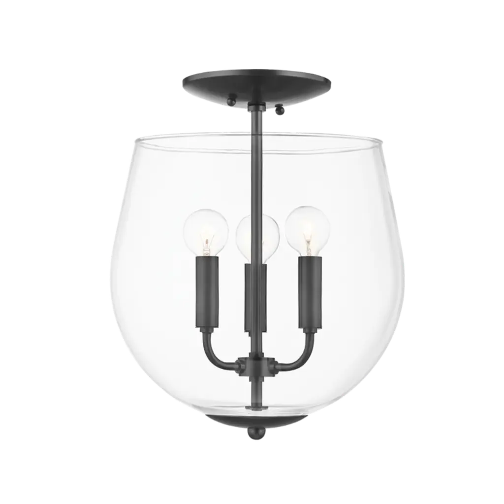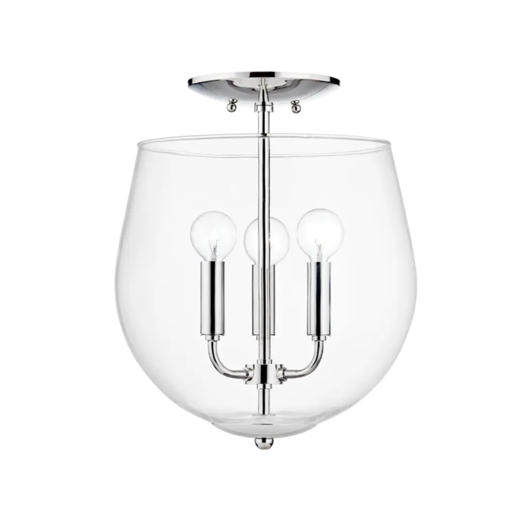 Need a little romance in your life? Bobbi is the perfect antitode, serving up major style in fine feminine form. This three-light flush mount features a cloche-style silhouette in hand-blown glass. Her metal frame is deceivingly dramatic, changing form based on the finish you choose. Aged brass feels vintage, old bronze, industrial, and polished nickel, modern.
