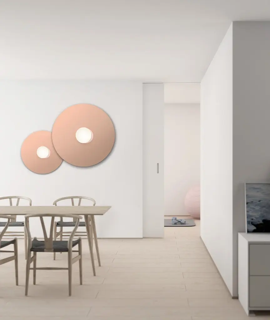 A study in refined simplicity, Bola Disc Flush offers a magical combination of mirror and globe refined down to its bare essentials. The objective with the Bola Disc Flush is to provide both direct and reflected light from either ceiling or wall mounted vantage points. Bola Disc Flush brings elegance and refinement. An ideal fixture for adding diffused and reflected light in hallway corridors, nooks, dining settings, bedrooms, or living areas. Stunning groupings can also be created by mixing different sizes together to form unique custom light displays. *1" Add-on Standoff available, which allows for overlapping disc groupings.