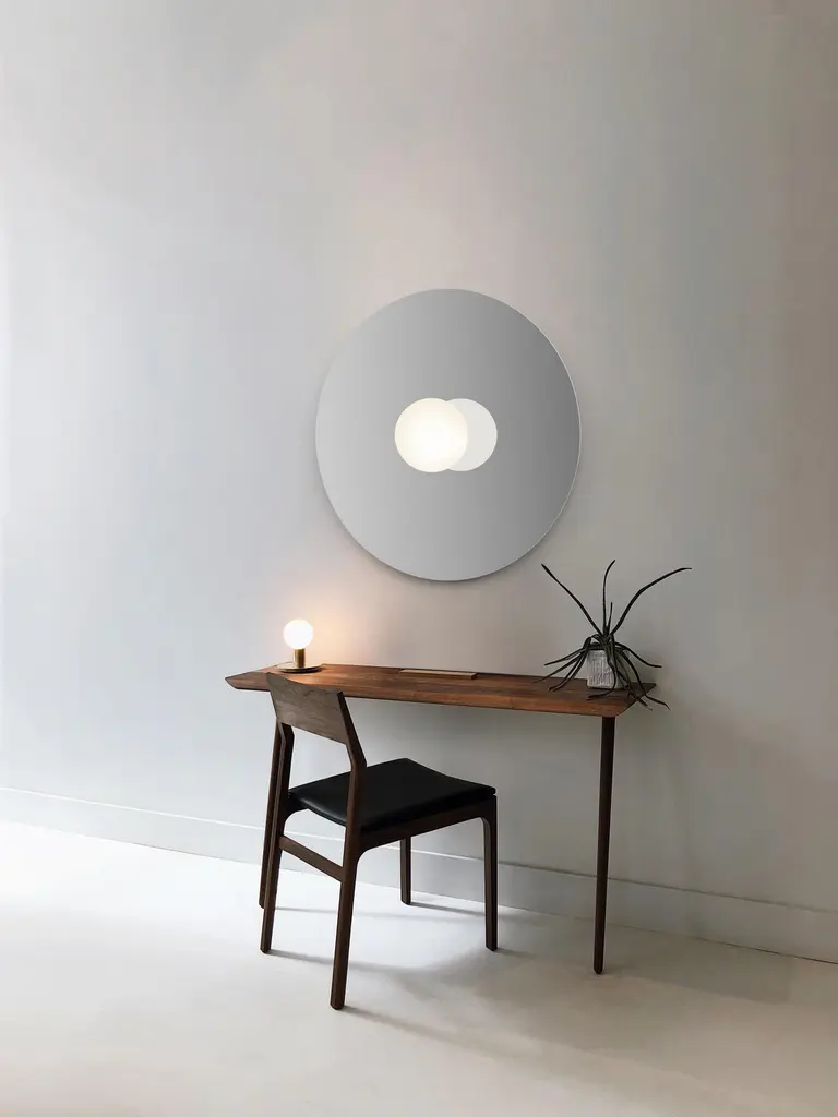 A study in refined simplicity, Bola Disc flush offers a magical combination of mirror and globe refined down to its bare essentials. The objective with the Bola Disc Flush is to provide both direct and reflected light from either ceiling or wall mounted vantage points. Bola Disc Flush brings elegance and refinement with four sizes and four finishes in white, brass, rose gold, or chrome. An ideal fixture for adding diffused and reflected light in hallway corridors, nooks, dining settings, bedrooms, or living areas. Stunning groupings can also be created by mixing different sizes and finishes together to form unique custom light displays.Specifications:Voltage: 120V, 240V, or 277V 50/60HzPower consumption: 8W (18”)Color temperature: 2700KLuminosity: 640 Lumens (18”)Luminaire efficacy: 57 Lumens/WattColor rendition index: 95 CRILight source: Custom LED high-output chip on boardLight control: Hard-wired Dimmable (ELV or 0-10V dimmer recommended)50K hour lifespanMaterials:Aluminum or SS disc, opal glass globe, steel canopy.