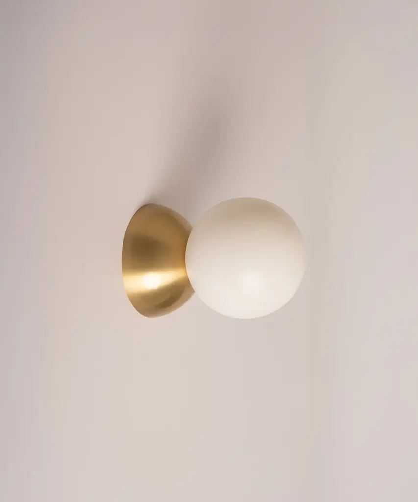 Bola Disc's seemingly magical combination of mirror and globe gets refined to the bare essentials in this version to mount on the ceiling or a wall. Providing both direct and reflected light, the advanced LED system gives the illusion of weightlessness by mirroring its surroundings. The elegant opaline glass globe diffuser is with a disk in in chrome, brass, rose gold or lacquered white finish. Striking on its own or mesmerizing in a grouping, as created by mixing any of the 4 different sizes together.