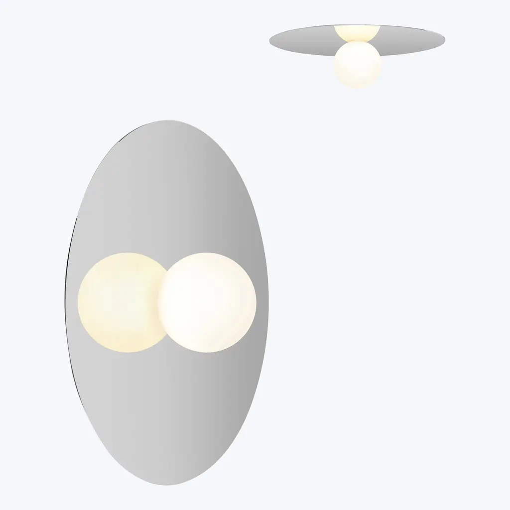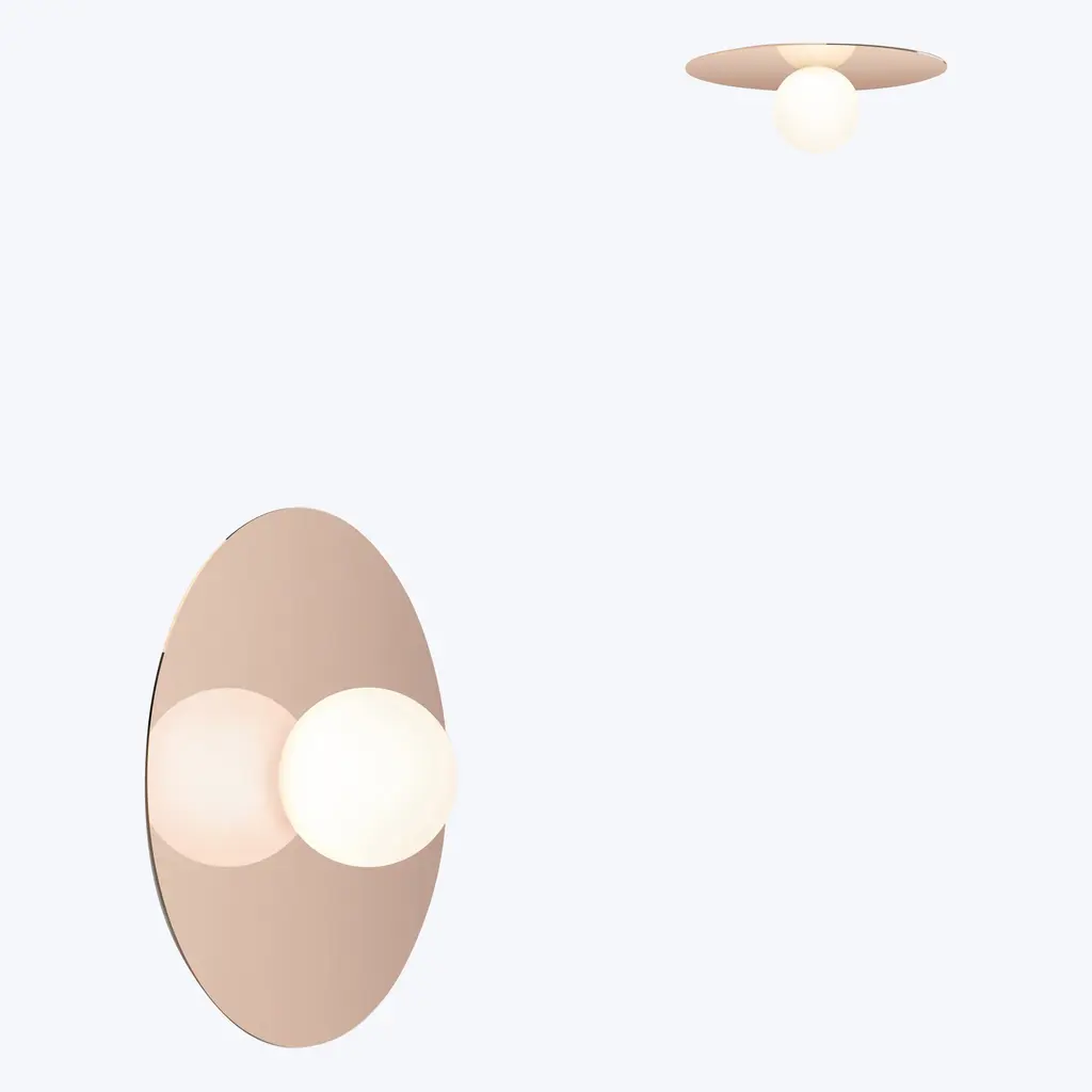 Pablo’s Bola Disc LED Flush Mount combines mirror and globe to showcase the refined beauty of the bare essentials. Designed to provide both direct and reflected light from either ceiling or wall-mounted vantage points, the Bola brings modern elegance to design-driven spaces. Available in Black, Brass, Chrome, Gunmetal, Rose Gold, and White. Choose from a range of sizes.