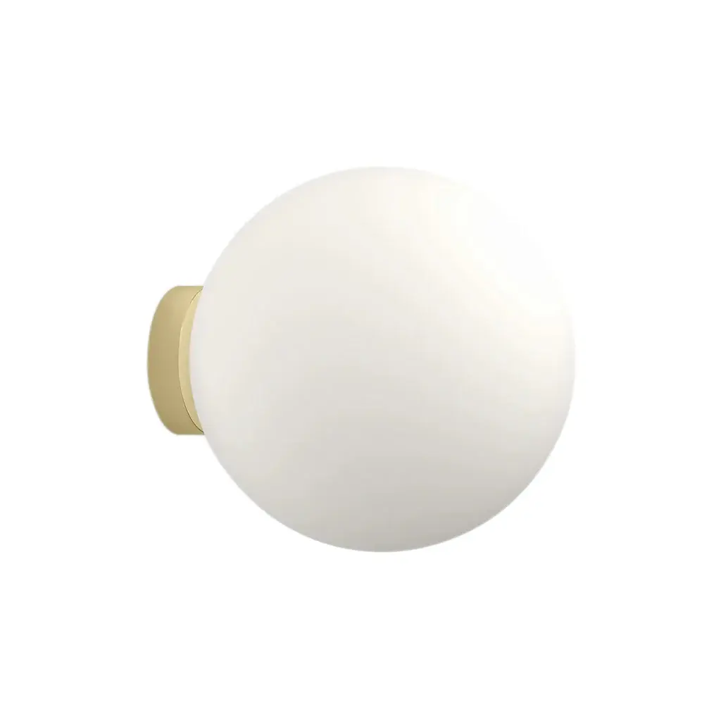 Bola Sphere fuses an elegant opal blown-glass globe with a steel canopy to give the illusion of a floating orb in its futuristic flush mount model, perfect for wall and ceiling mounting. Bola Sphere is offered in 7 globe sizes ranging from 4 to 16 inches. The next-gen LED illumination is fully dimmable, offering a "Dim-to-Warm" feature that transitions the light color from 2700K to 1800K.