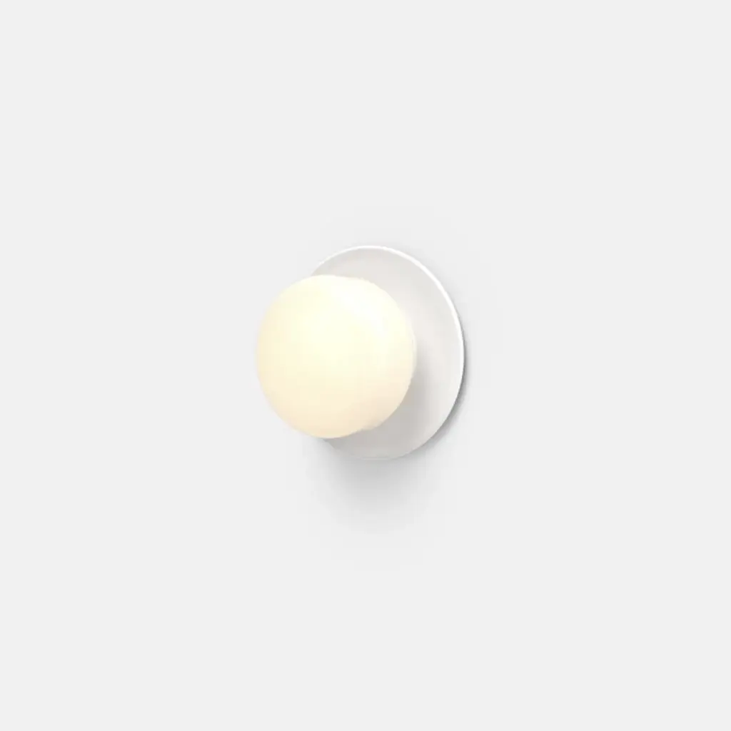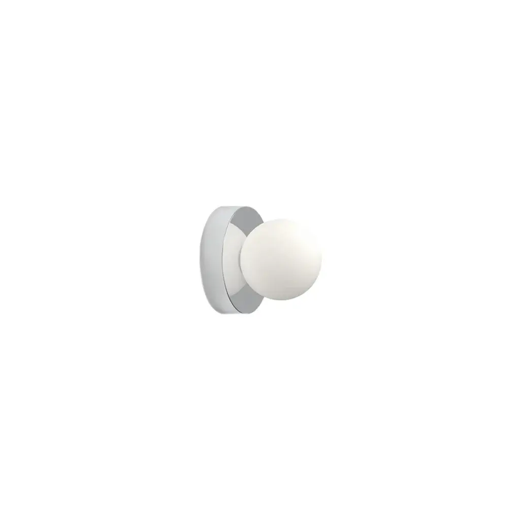 Bola Sphere fuses an elegant opal blown-glass globe with a steel canopy to give the illusion of a floating orb in its futuristic flush mount model, perfect for wall and ceiling mounting. Bola Sphere is offered in 7 globe sizes ranging from 4 to 16 inches. The next-gen LED illumination is fully dimmable, offering a "Dim-to-Warm" feature that transitions the light color from 2700K to 1800K.