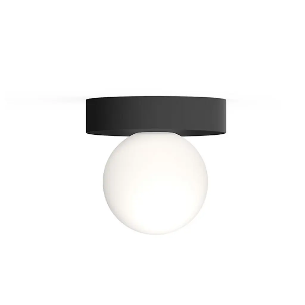 Provide lasting and restrained illumination to indoor ceilings, wall surfaces, or Bola Sphere LED Wall / Flushmount from Pablo Designs. Unobtrusive but elegant, each lamp extends from a small circular wall mount in strong, smooth steel, transmitting strong LED lamping beneath a spherical shade of blown Opal glass. The round shade coordinates well with its mounting, keeping a simple design lineage with retro-modern flair, transforming the lamping’s bright and energy-friendly blare into an even and expressive warmth
