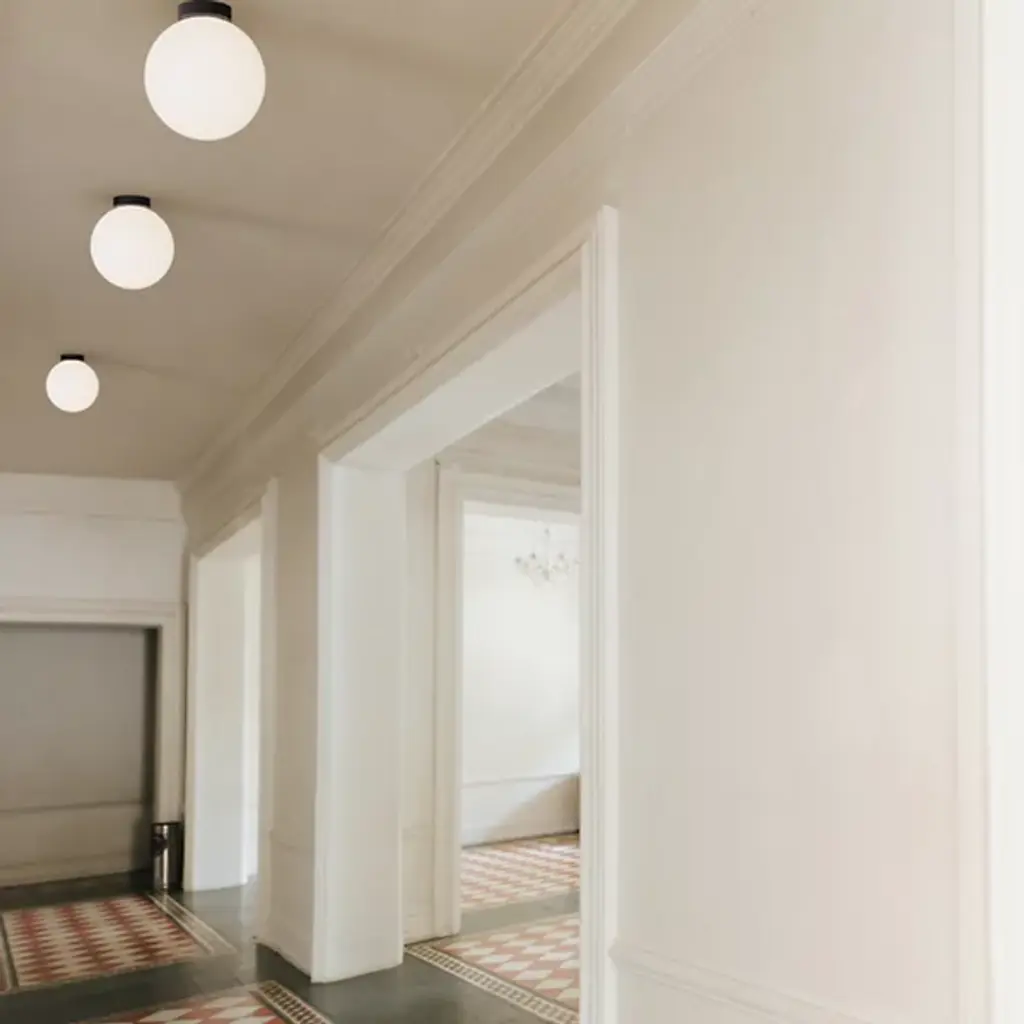 Provide lasting and restrained illumination to indoor ceilings, wall surfaces, or Bola Sphere LED Wall / Flushmount from Pablo Designs. Unobtrusive but elegant, each lamp extends from a small circular wall mount in strong, smooth steel, transmitting strong LED lamping beneath a spherical shade of blown Opal glass. The round shade coordinates well with its mounting, keeping a simple design lineage with retro-modern flair, transforming the lamping’s bright and energy-friendly blare into an even and expressive warmth