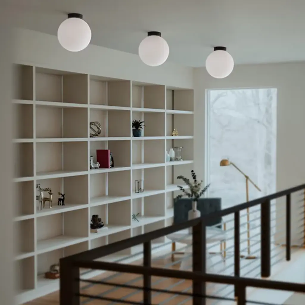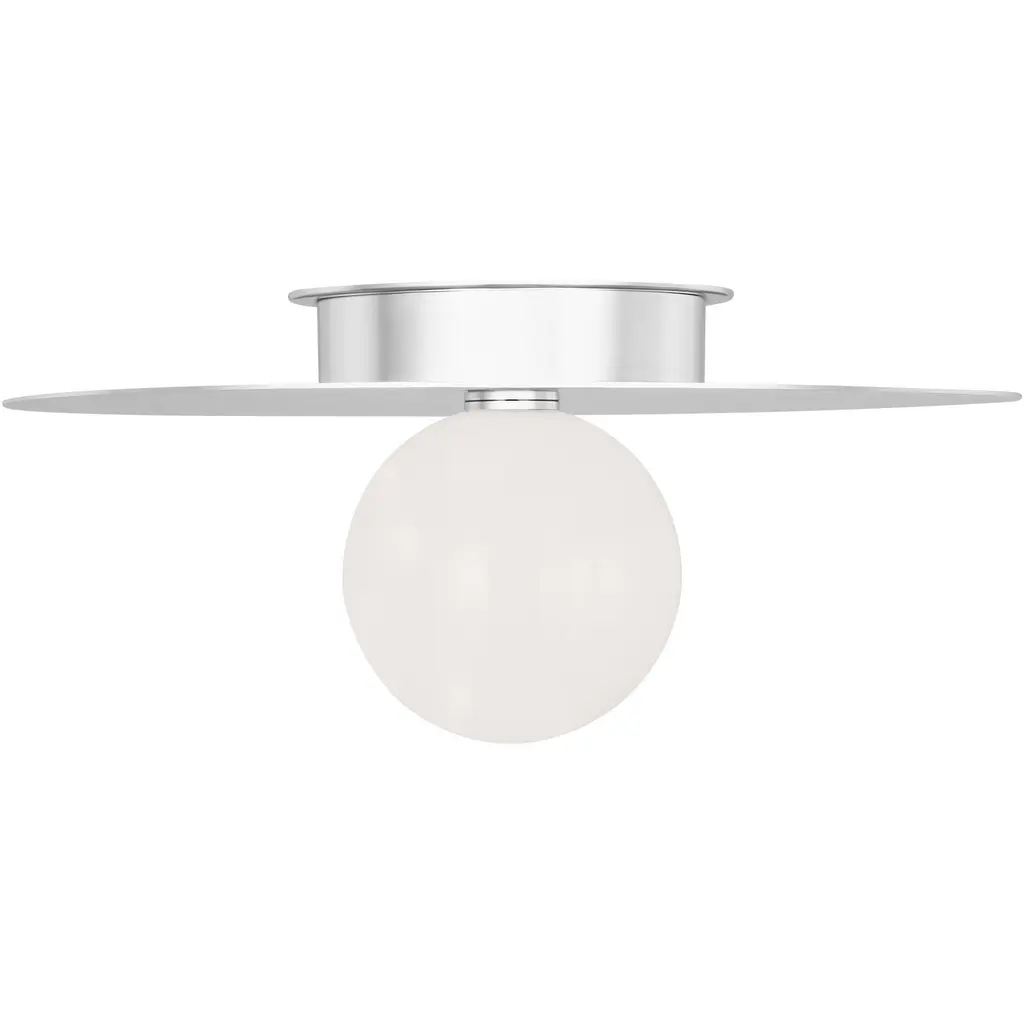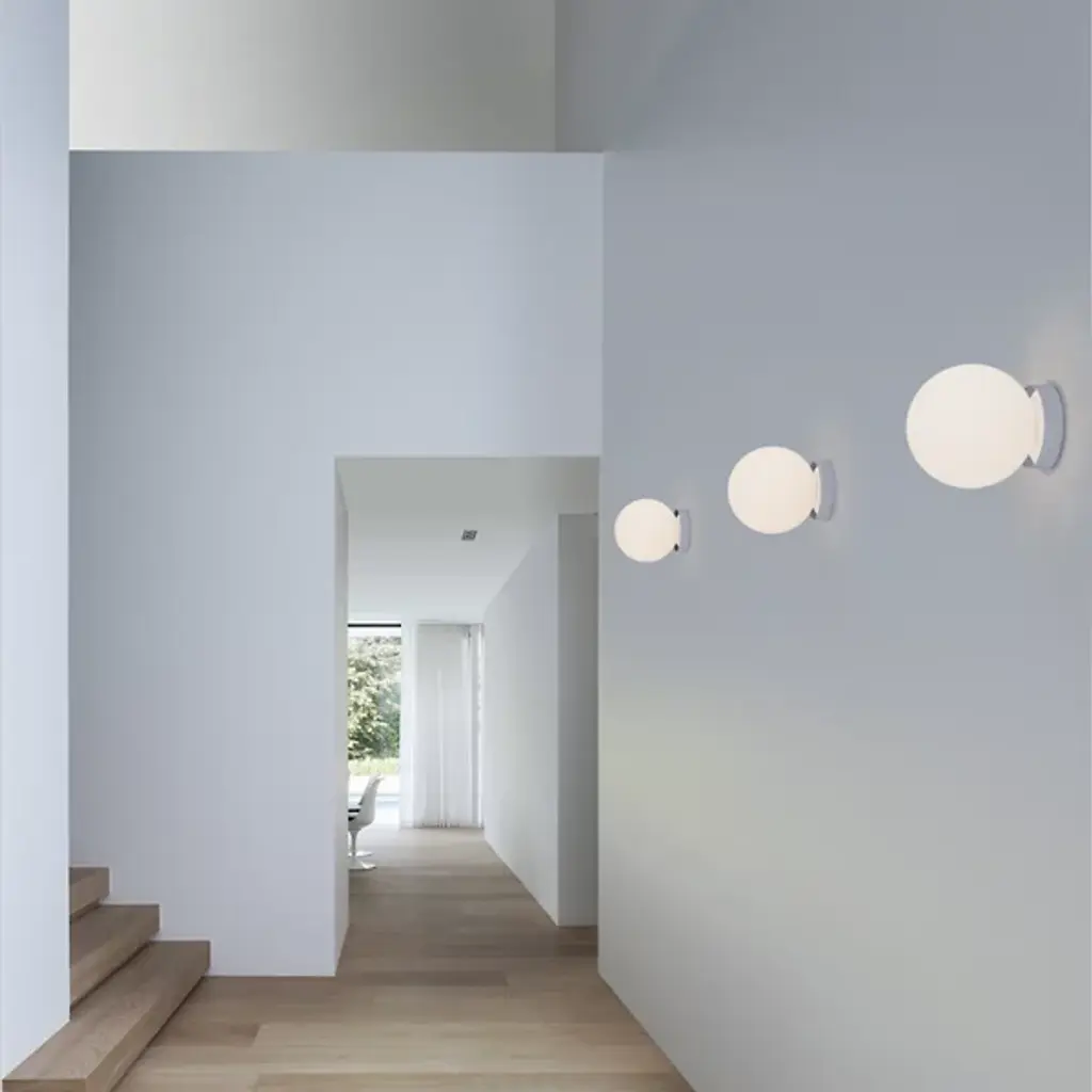 Provide lasting and restrained illumination to indoor ceilings, wall surfaces, or Bola Sphere LED Wall / Flushmount from Pablo Designs. Unobtrusive but elegant, each lamp extends from a small circular wall mount in strong, smooth steel, transmitting strong LED lamping beneath a spherical shade of blown Opal glass. The round shade coordinates well with its mounting, keeping a simple design lineage with retro-modern flair, transforming the lamping’s bright and energy-friendly blare into an even and expressive warmth