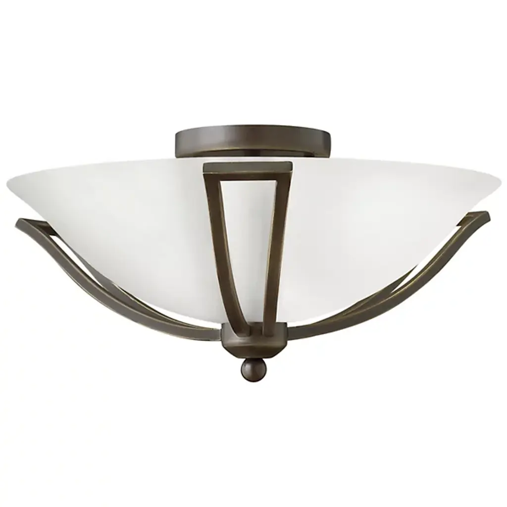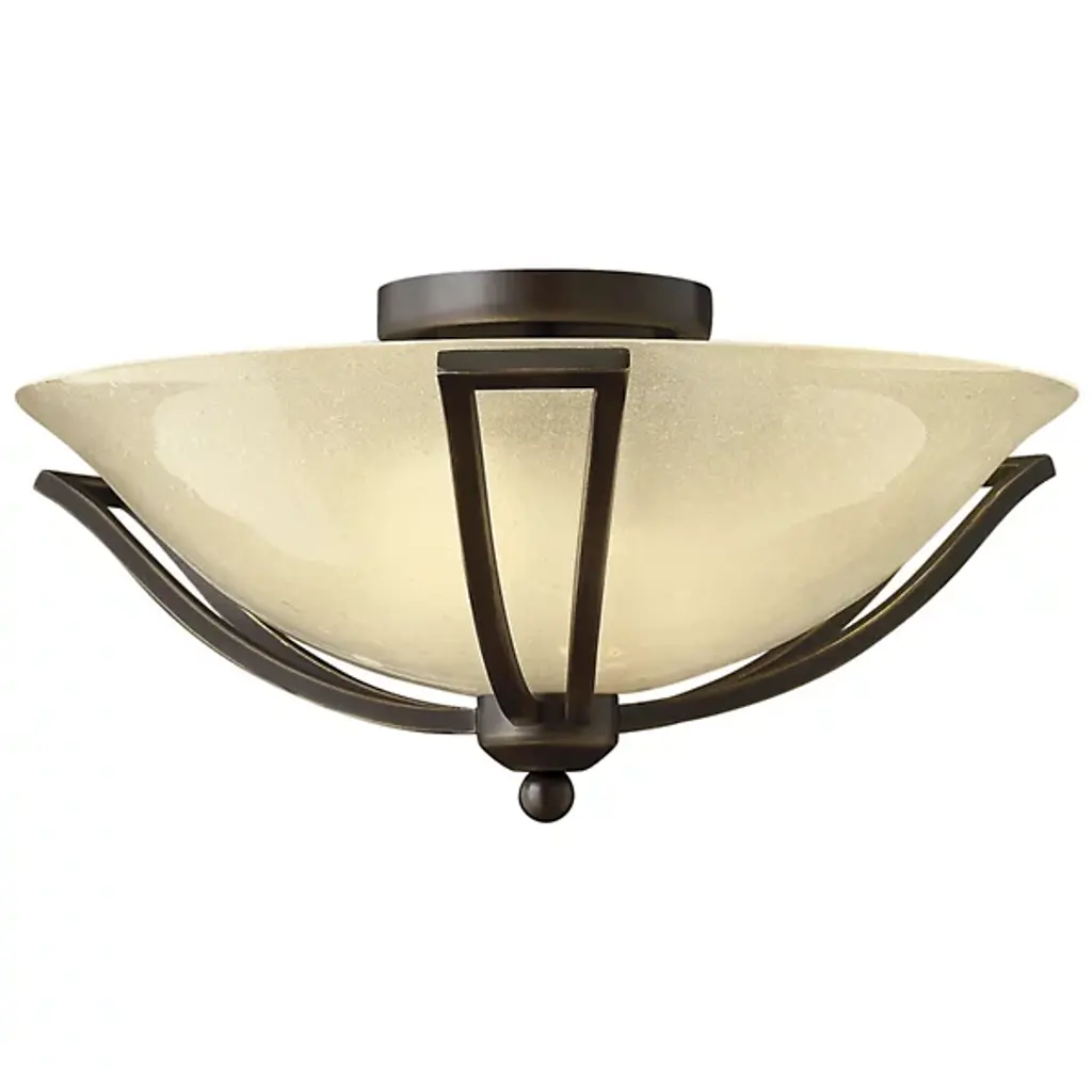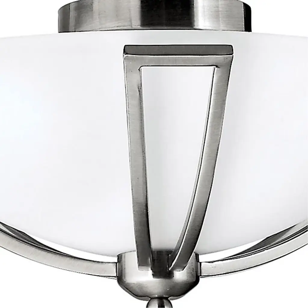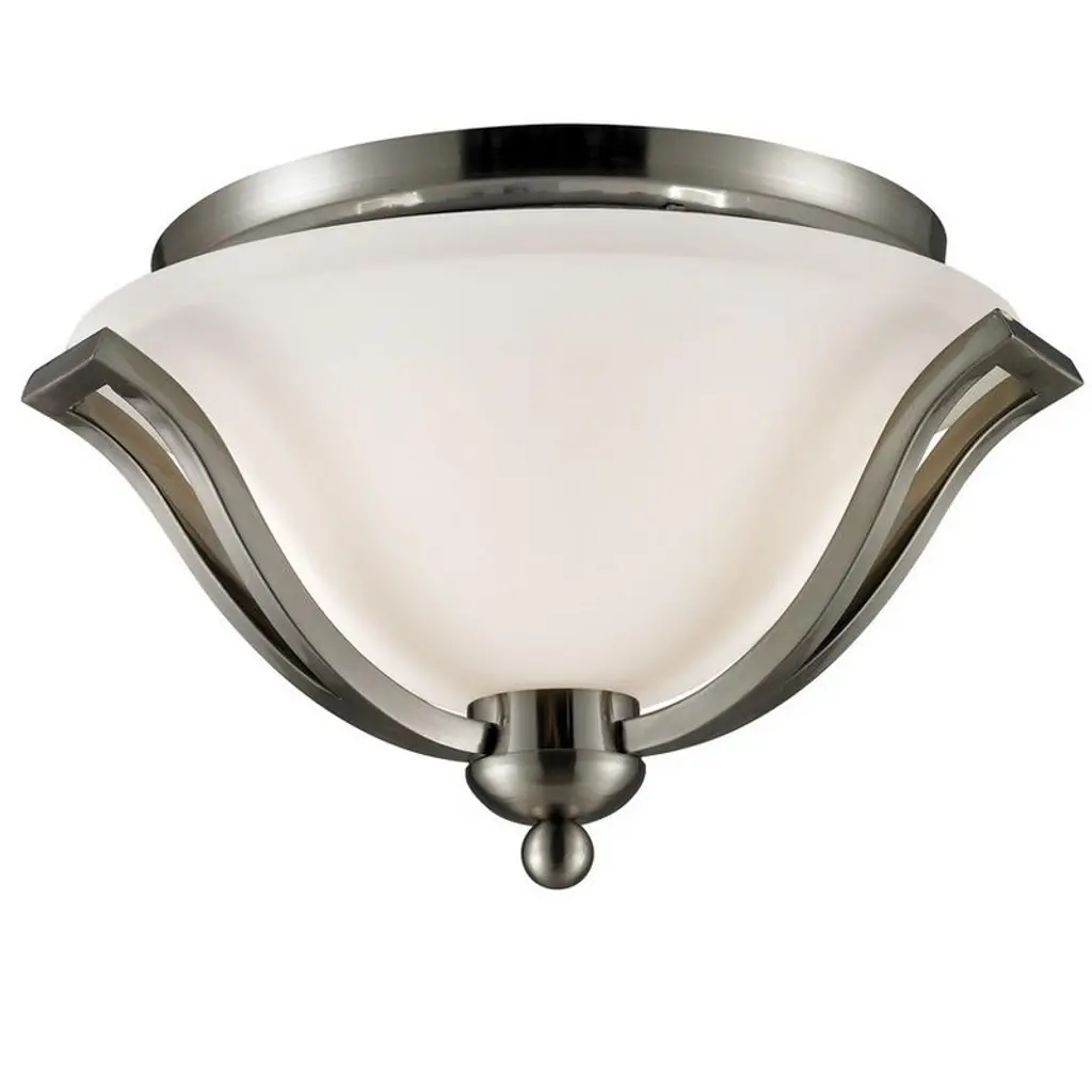 Two key components of this fixture allow it to stand out in its application environment. The Bolla Flushmount by Hinkley Lighting utilizes metal and glass to create an elemental harmony; it is a visual dichotomy that is not only pleasing to look at but works together for high efficiency. The fixture’s metallic framework seems to cradle the etched opal glass, inside of which is the internal lamping. When lit, the fixture can radiate a soft, diffused style of light. The Bolla is best suited for use in areas like living rooms, bedrooms, and kitchen spaces.