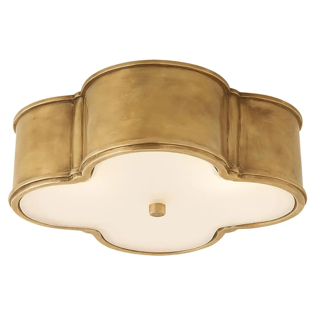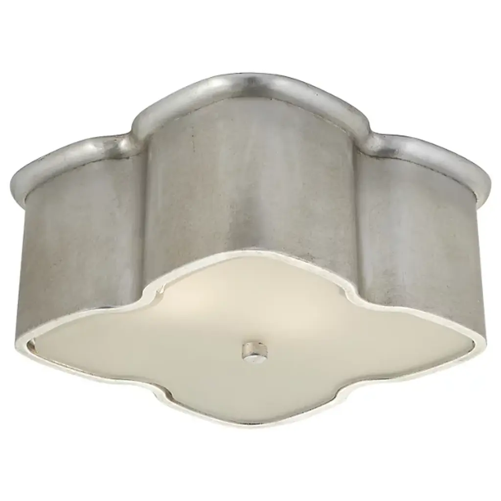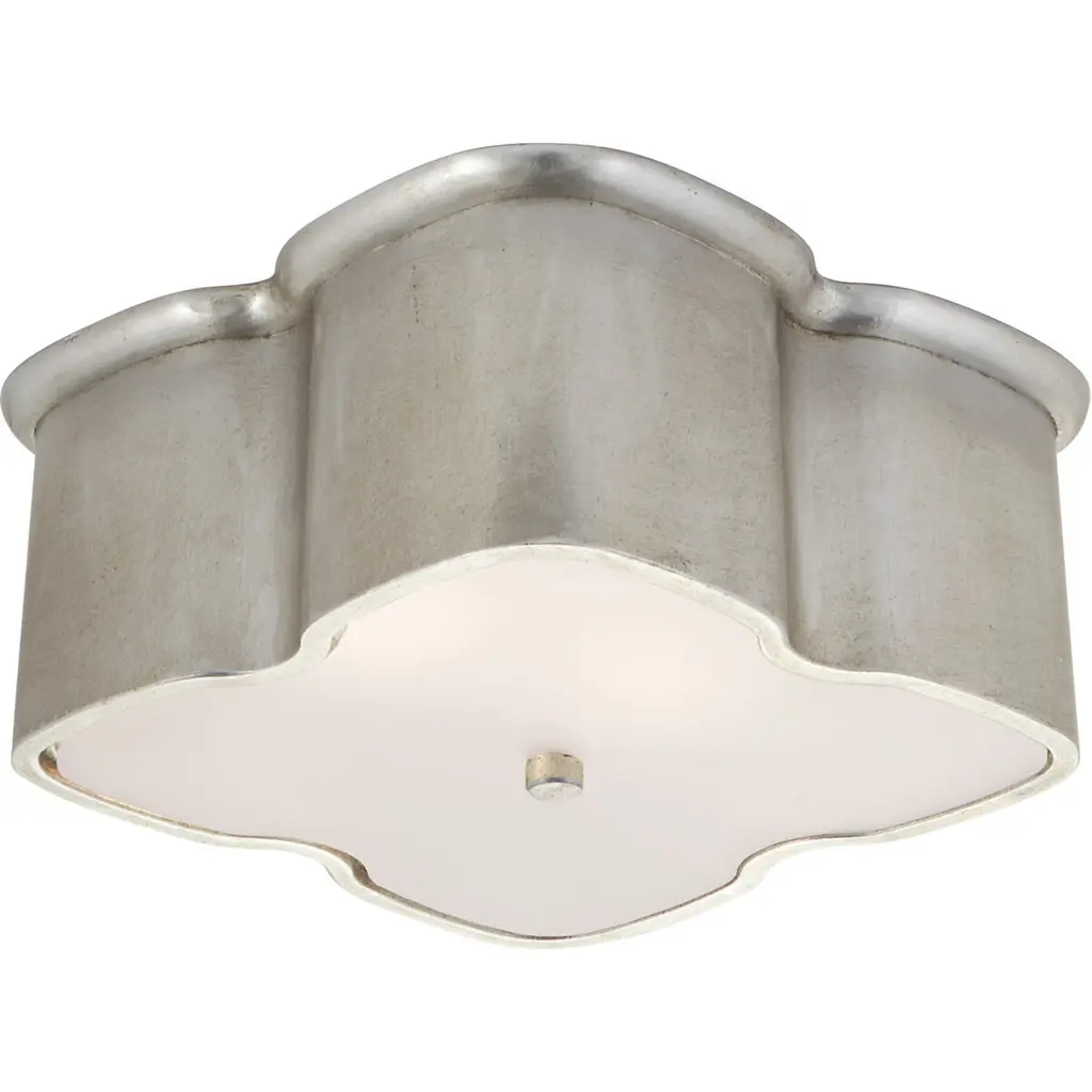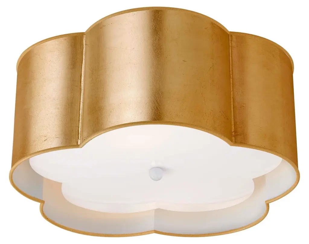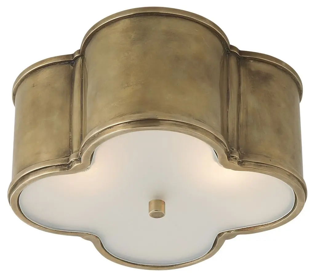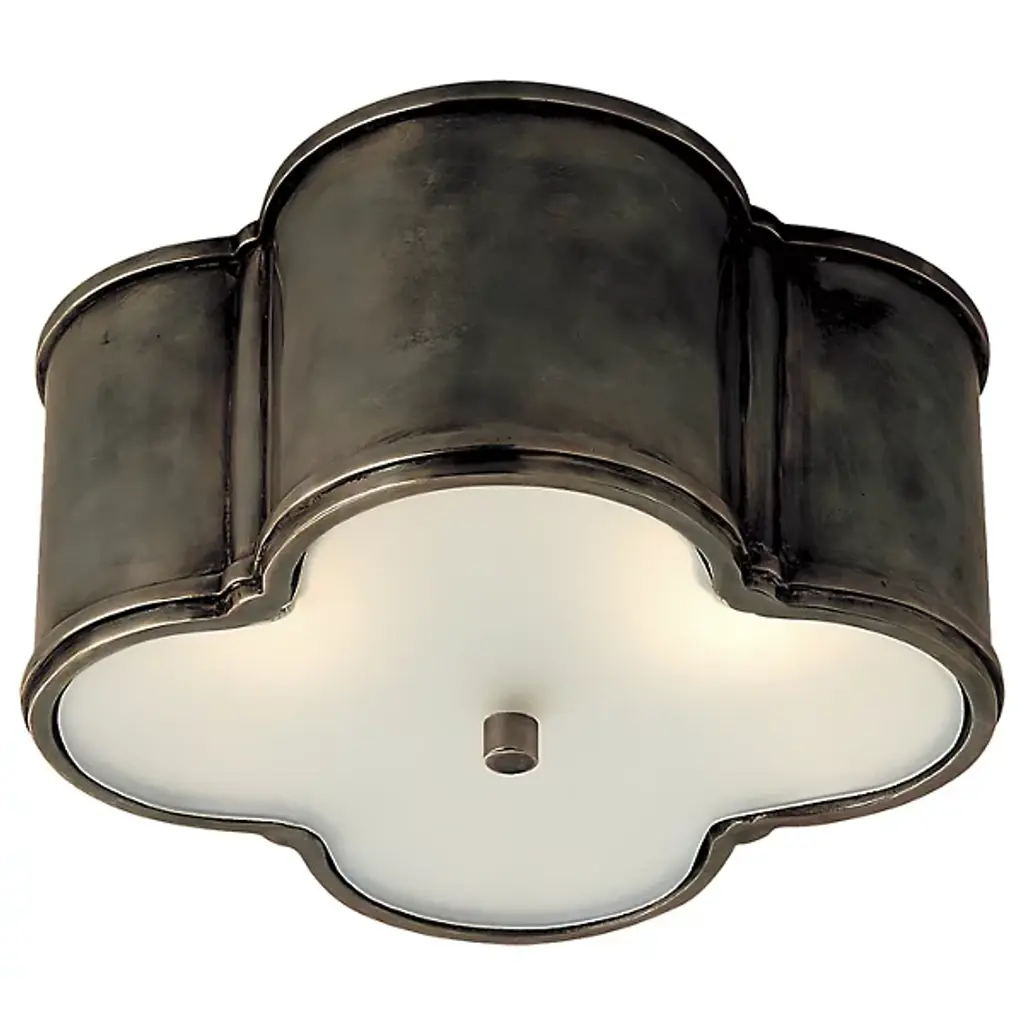 The Bolsena Clover Flushmount by Visual Comfort Signature, formerly known as Visual Comfort, practically blossoms from the ceiling with its organically sculpted design and warm ambient lighting. Its subtle curves and ridges contrast beautifully with a rugged metal body, mixing splendor and strength in an alluring display. The Frosted Glass shade (accented by a metal finial) provides a soft, even diffusion of light, bringing radiance as well as serenity to the surrounding area.