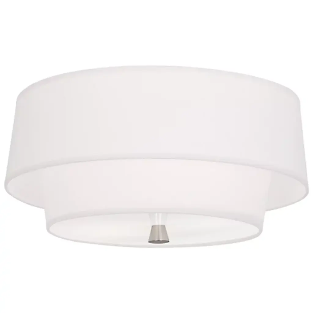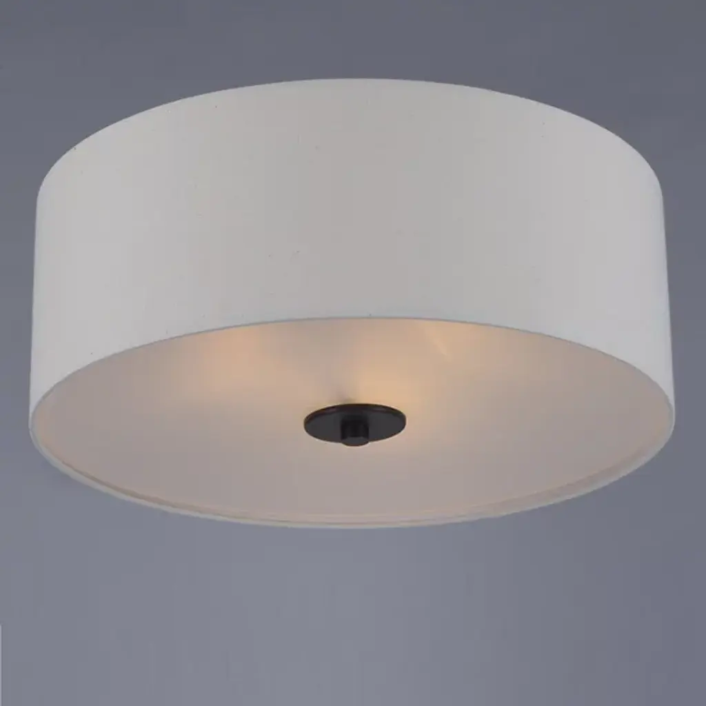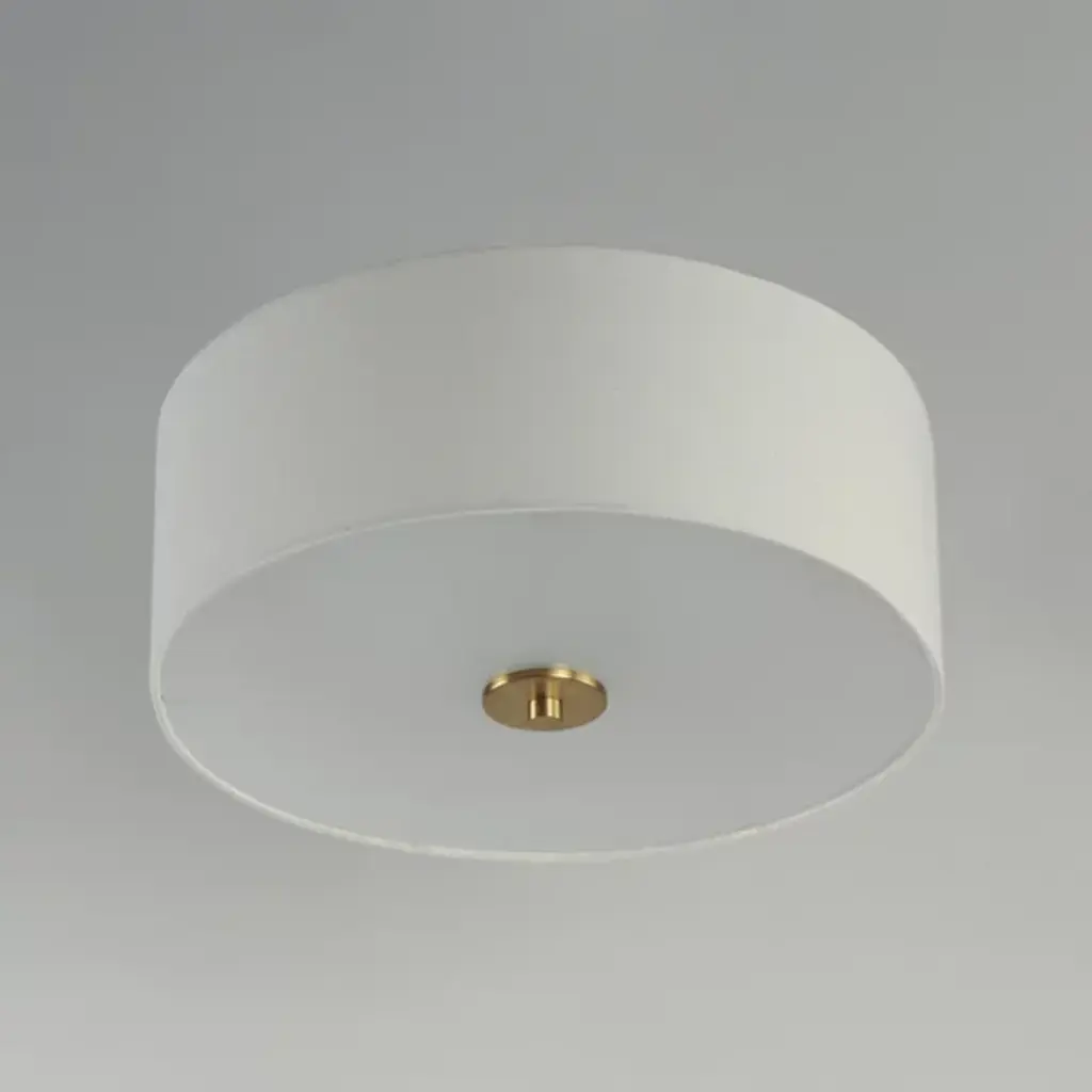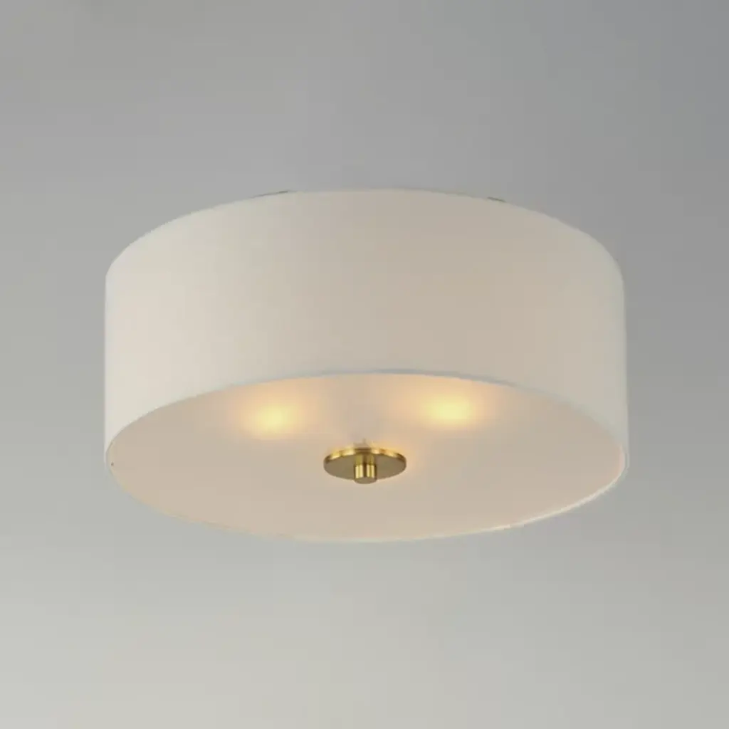 Clean and simple, the Bongo 3-Light Flushmount from Maxim Lighting provides an even and warm glow to the space. Mounting directly to the ceiling, this piece consists of a smooth fabric drum shade that holds a set of three bulbs. A smooth metal finial rests in the center, complementing and standing out from the shade, creating a focal point for the light to wrap around as it brings the shade to life with an inviting glow.