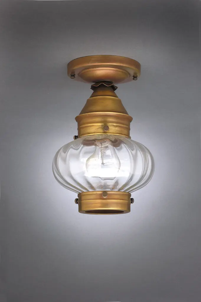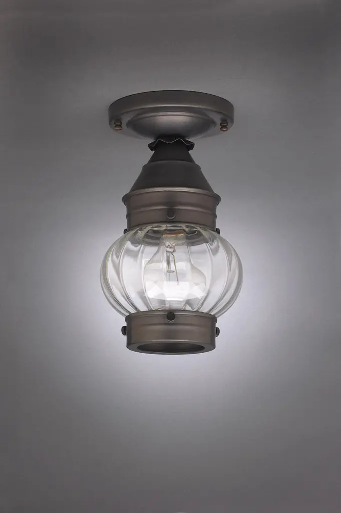 Caged Pear Flush Verdi Gris Medium Base Socket Clear Seedy Glass