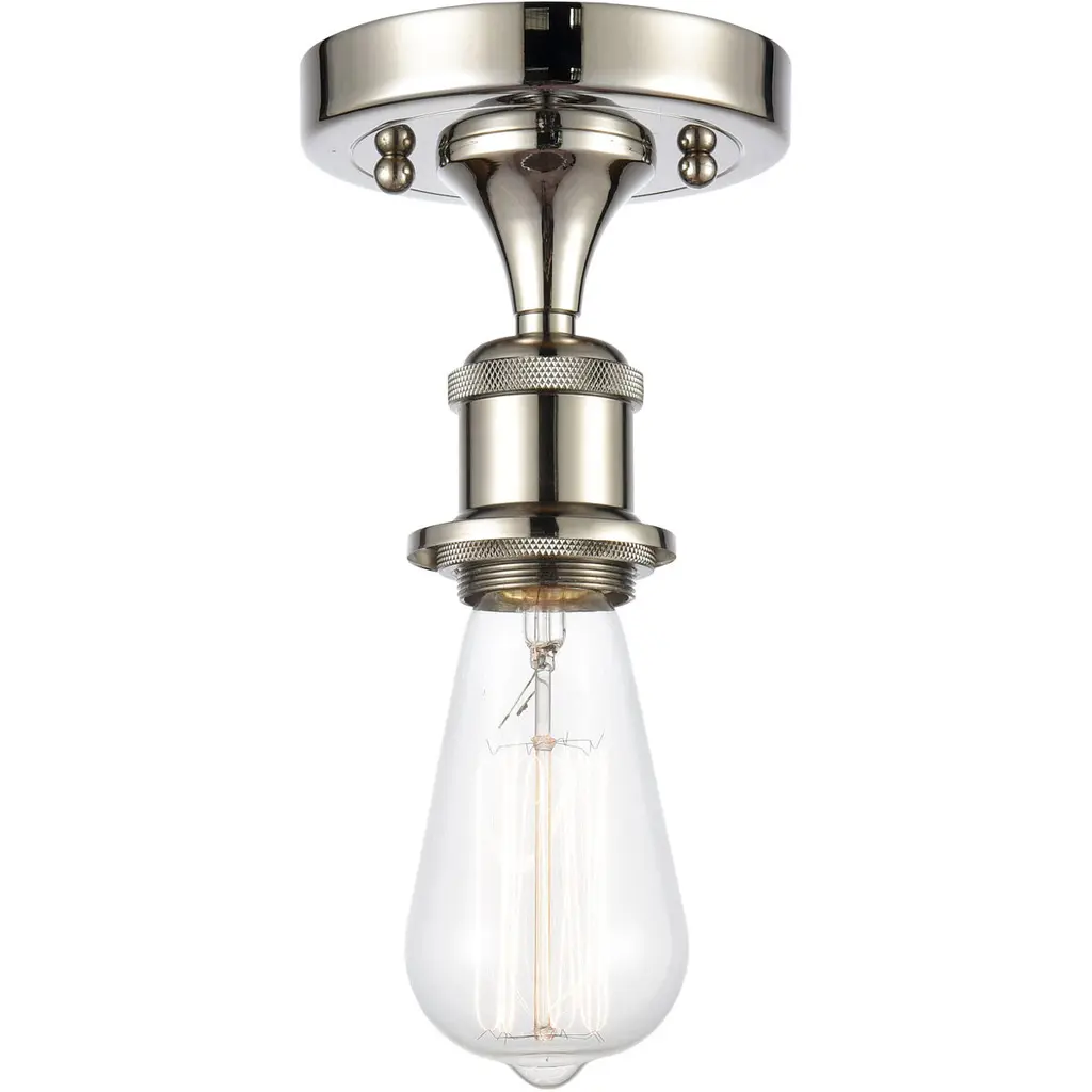 The Boston Flushmount by Visual Comfort Signature, formerly known as Visual Comfort, elevates your surrounding décor with its sculpted White glass shade and industrial-inspired metal holder. Once lit, a single internal lamp shines through the shade, creating a warm ambiance that leaves a lasting impression. Complemented by a concentrically etched canopy.