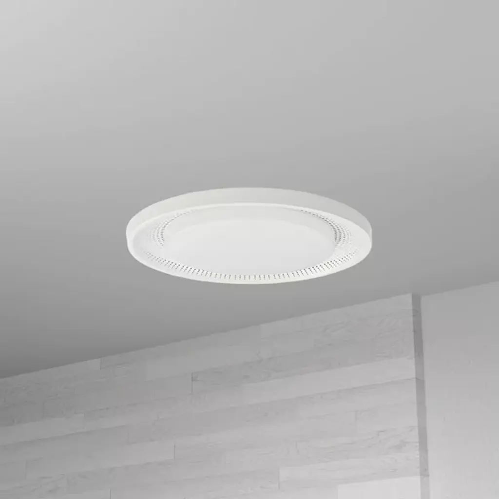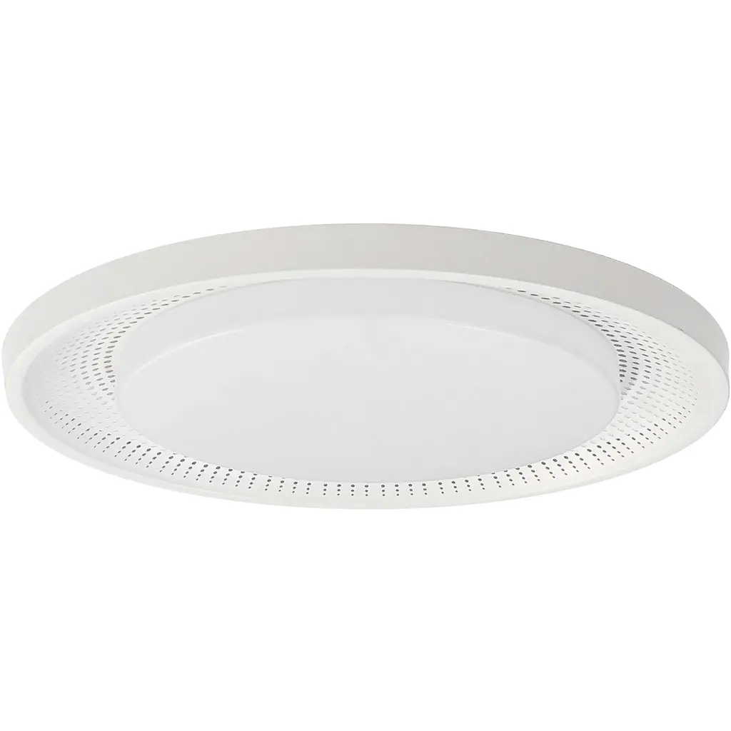 The Boullier LED Flushmount by Dainolite is a bold addition to a variety of spaces and is dressed up with some thoughtful details. This contemporary, circular fixture sits nestled close to the ceiling, and a round diffuser filters an even layer of illumination onto surroundings. A perforated metal ring frames this simple composition, adding a textured touch that contrasts with the smooth shape of this design and the ceiling it is next to.