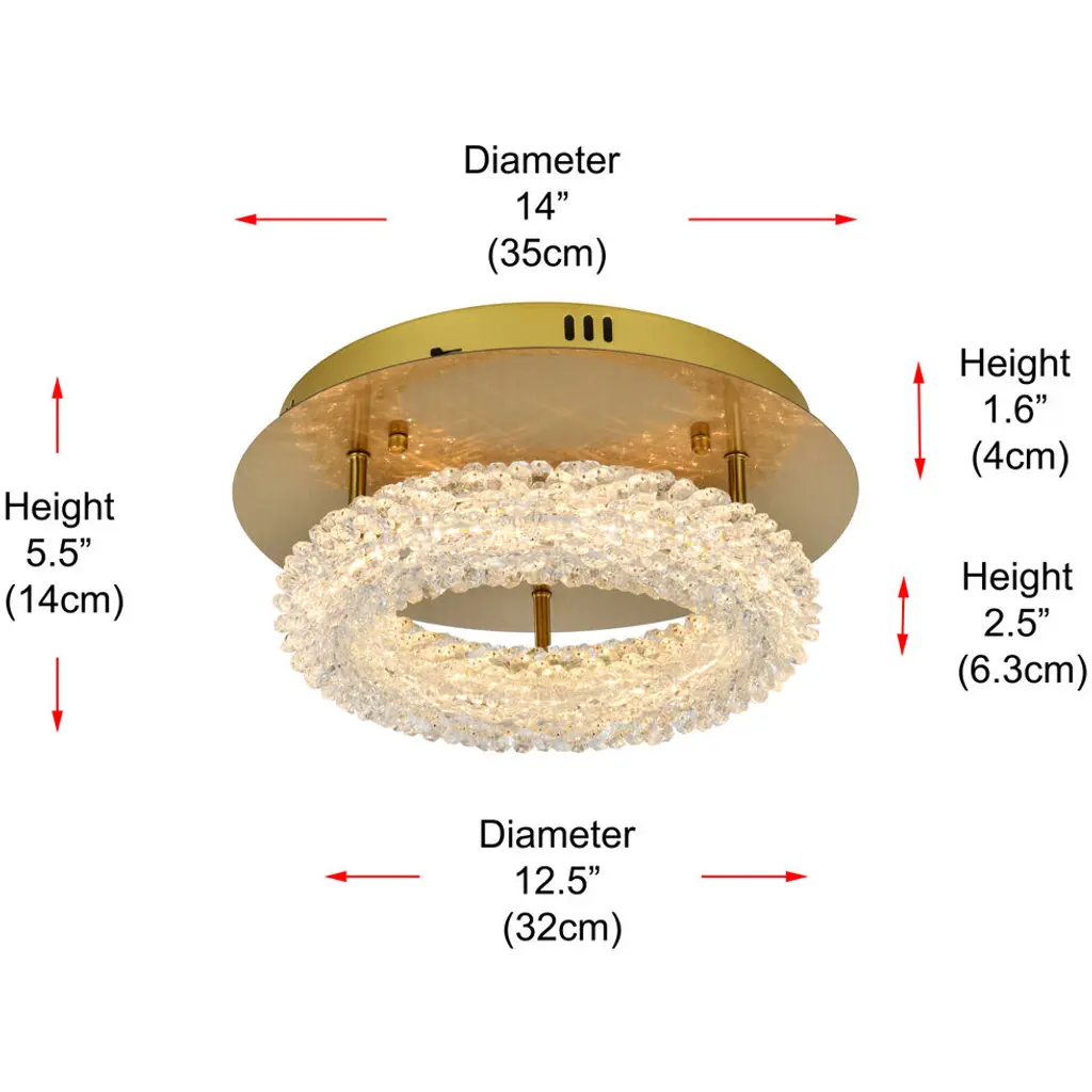 Illuminate your surroundings with the enchanting Bowen 14 inch LED Flush Mount, showcasing a captivating round crystal-adorned design for a touch of sophistication. With an impressive LED lifespan of 20,000 hours, this light delivers enduring brilliance to your space. Enjoy a swift and user-friendly installation experience with no assembly required. Choose from three color temperatures (3000K, 4500K, 6000K) to set the perfect mood. Crafted with durable Iron and Crystal materials, ETL listed for safety compliance, and featuring integrated LED technology, this flush mount ensures long-lasting and hassle-free illumination.