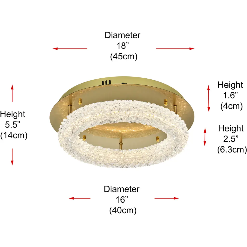 Illuminate your surroundings with the enchanting Bowen 18 inch LED Flush Mount, showcasing a captivating round crystal-adorned design for a touch of sophistication. With an impressive LED lifespan of 20,000 hours, this light delivers enduring brilliance to your space. Enjoy a swift and user-friendly installation experience with no assembly required. Choose from three color temperatures (3000K, 4500K, 6000K) to set the perfect mood. Crafted with durable Iron and Crystal materials, ETL listed for safety compliance, and featuring integrated LED technology, this flush mount ensures long-lasting and hassle-free illumination.
