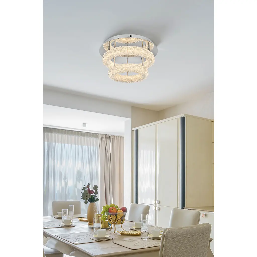 Illuminate your space with the enchanting Bowen 18 inch LED Tiered Flush Mount. This light boasts an impressive LED lifespan of 20,000 hours, providing enduring brilliance for your space. No assembly required, ensuring a swift and user-friendly installation experience. Choose from three color temperatures (3000K, 4500K, 6000K) to set the perfect mood for any occasion. Crafted with durable Iron and Crystal materials for long-lasting reliability. ETL listed for safety compliance, ensuring a secure and reliable lighting solution. Integrated LED technology means you'll never have to buy bulbs, ensuring long-lasting and hassle-free illumination.