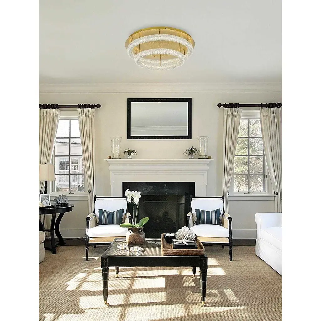 Illuminate your space with the enchanting Bowen LED Tiered Flush Mount. This light boasts an impressive LED lifespan of 20,000 hours, providing enduring brilliance for your space. No assembly required, ensuring a swift and user-friendly installation experience. Choose from three color temperatures (3000K, 4500K, 6000K) to set the perfect mood for any occasion. Crafted with durable Iron and Crystal materials for long-lasting reliability. ETL listed for safety compliance, ensuring a secure and reliable lighting solution. Integrated LED technology means you'll never have to buy bulbs, ensuring long-lasting and hassle-free illumination.