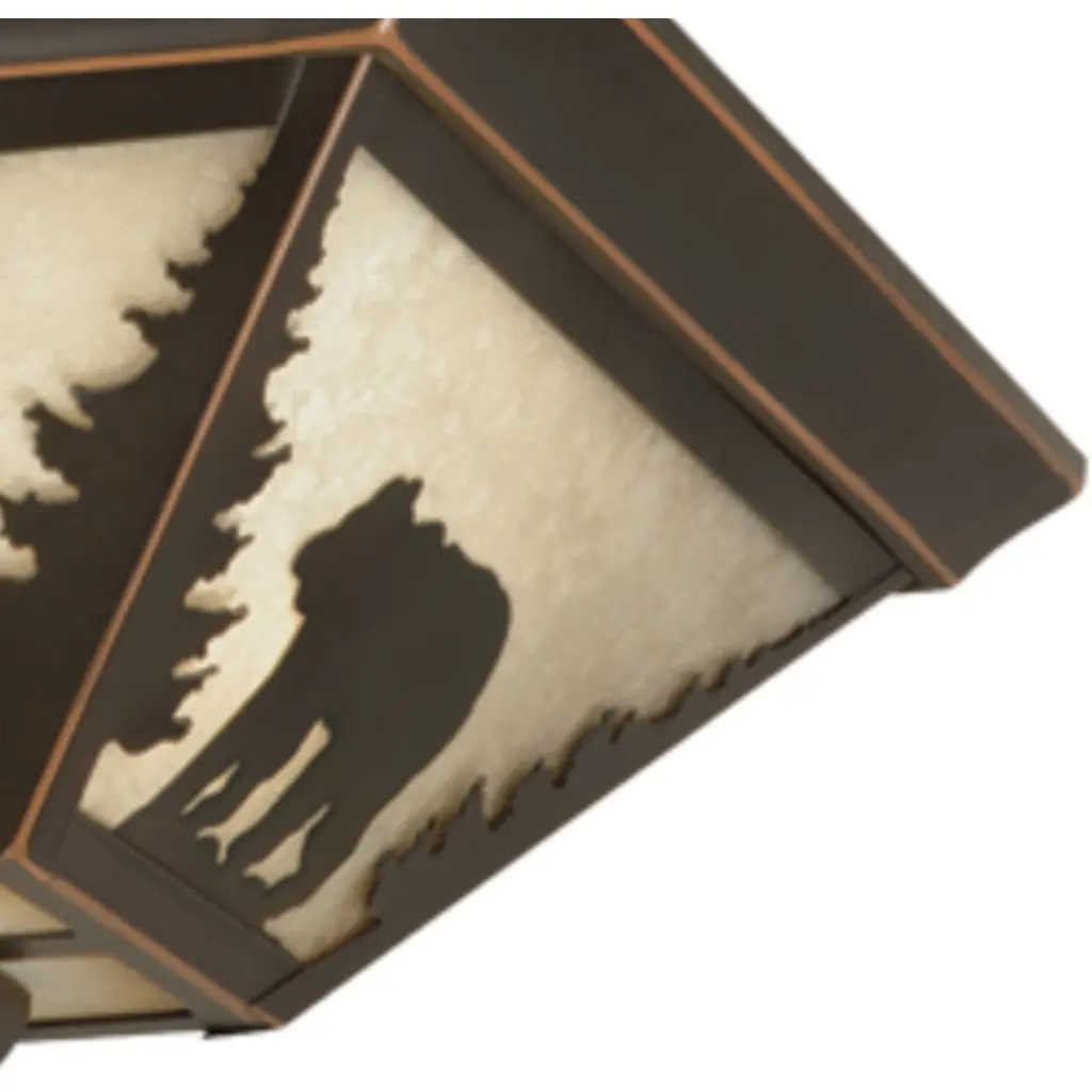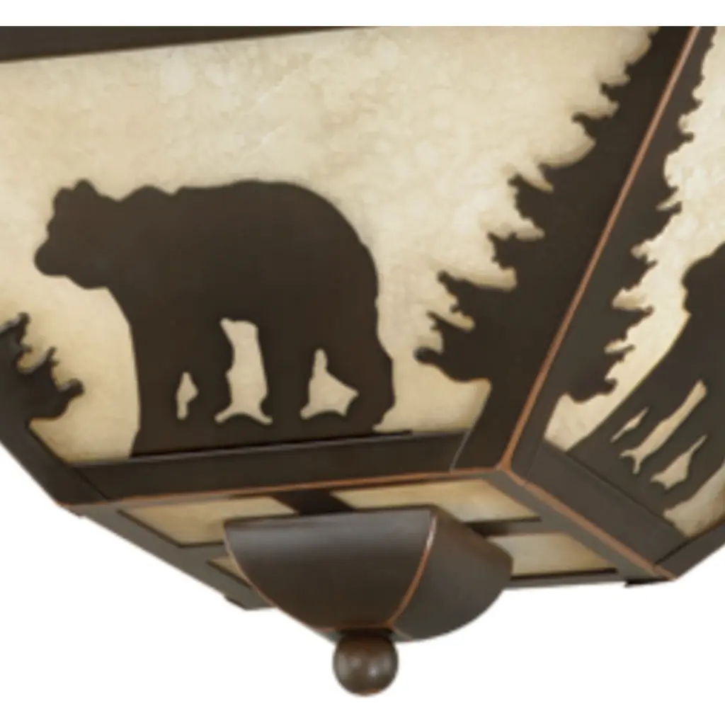Evoking the spirit of the wilderness, this rustic themed light is clad in a burnished bronze finish and features silhouetted bear imagery atop glowing white tiffany style glass. The classic form of this lamp makes it a great choice for a vacation lodge, cabin or a suburban home - it will complement a variety of home styles: anywhere you want to bring an element of nature. Medium screw base lamping provides maximum light output, and flexibility in bulb choice.