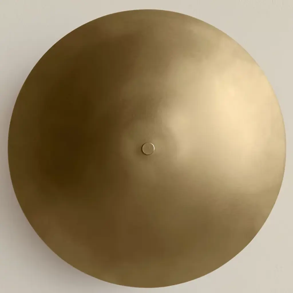 The Brass Arundel Slim Wall / Flushmount from In Common With transmits captivating allure with stunning inset illumination. A simple design concealing small yet powerful lamping behind a curving, meticulously spun brass shade, this fixture casts a seductive and flattering glow, the structure itself suitable for mounting on ceilings or walls in any space. ADA-compliant and damp-listed for placement in any environment, its inception traces back to an unexpected find at a Maine garage sale. The design evolves from a prototype intersecting between a base and a diffuser, maturing into a handsome, almost classic form, offering a range of finish options to suit diverse preferences.