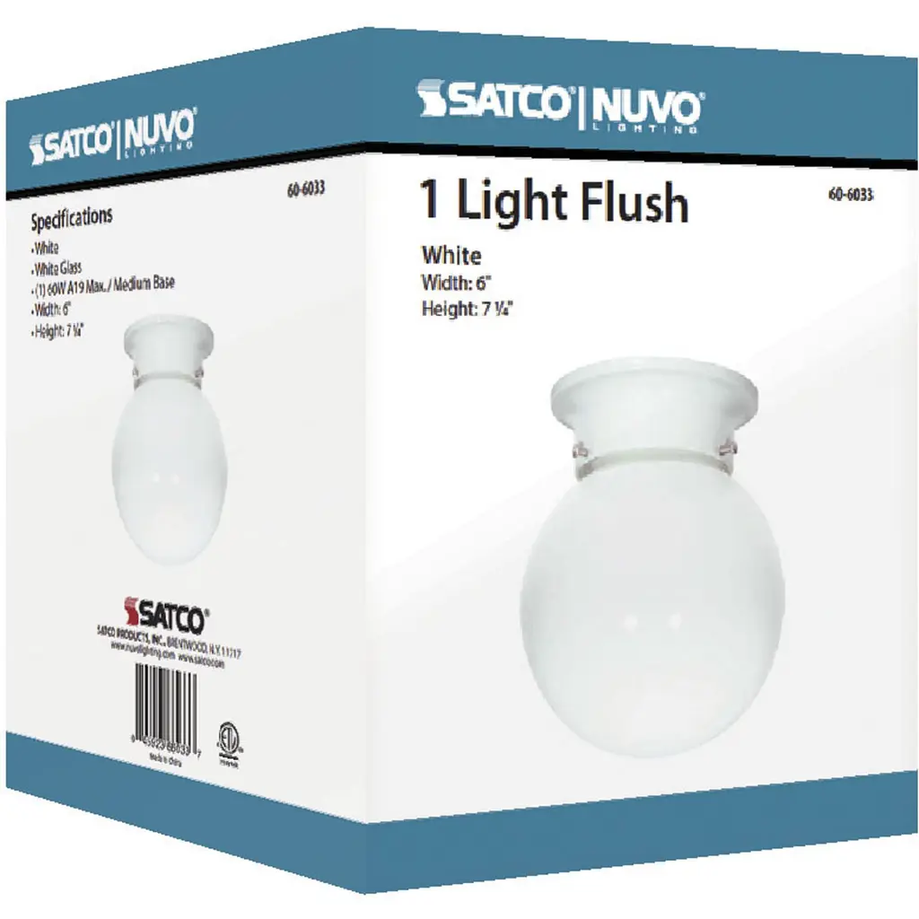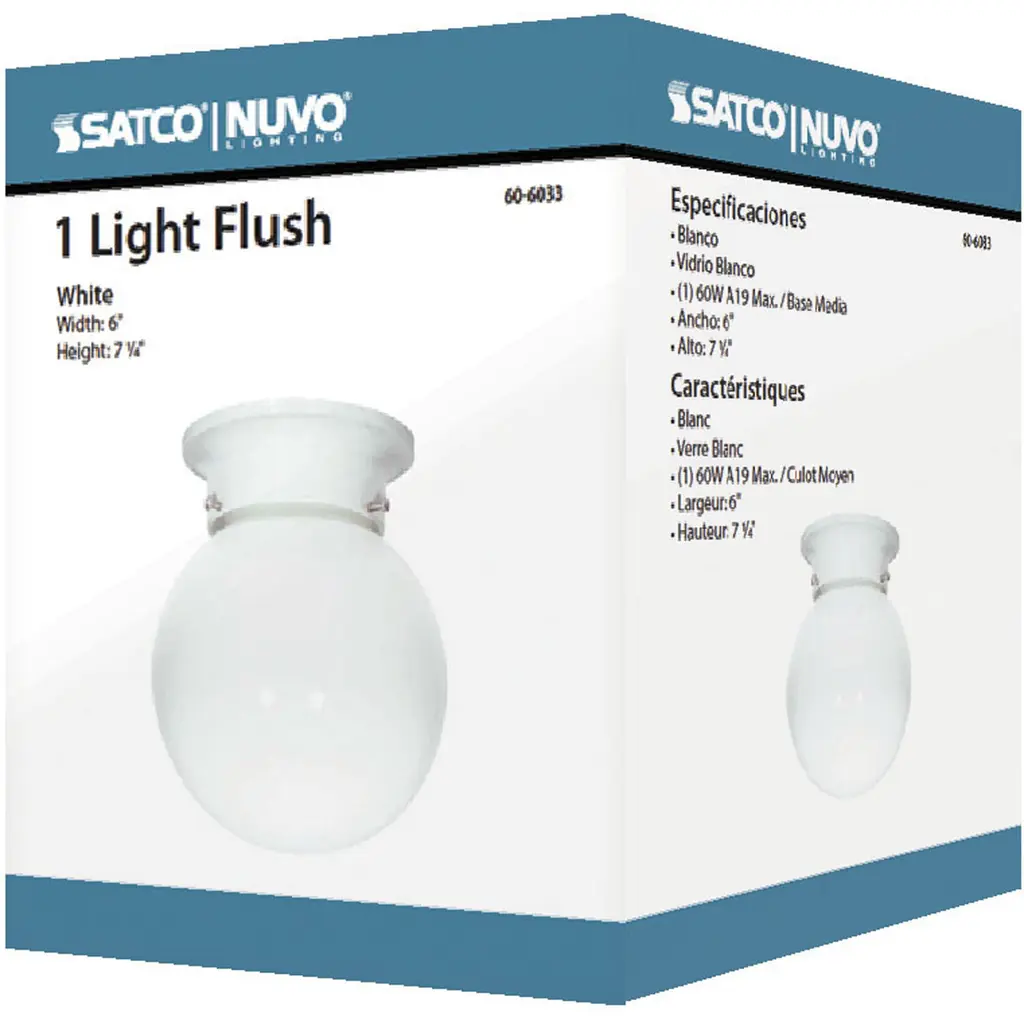 1 Light; 6 in.; Ceiling Fixture; White Ball; Color retail packaging