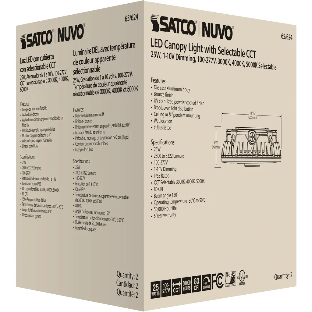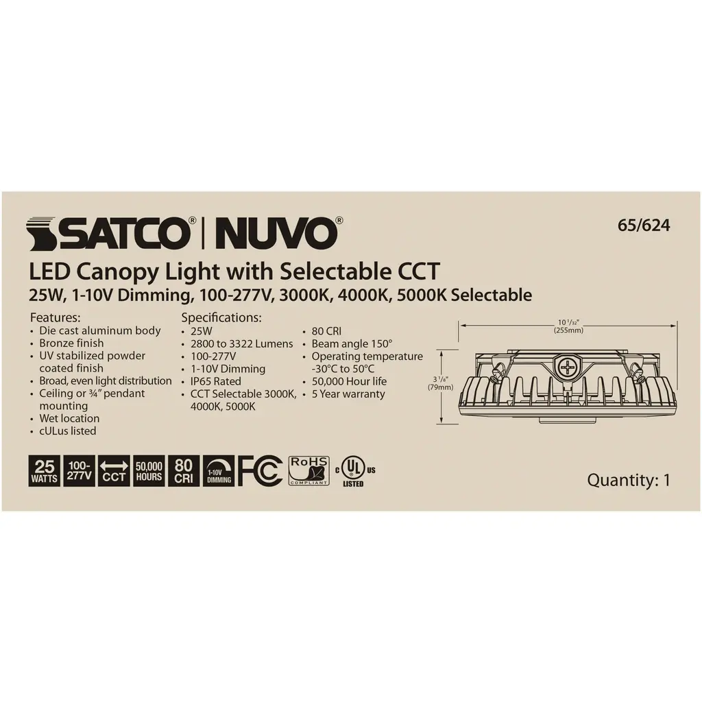LED Canopy Fixture - 25 Watt - CCT Selectable - Bronze Finish - 100-277 Volts