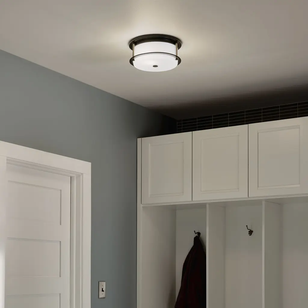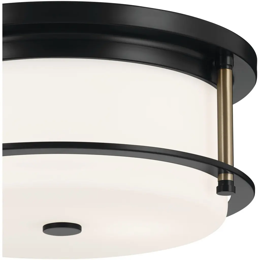 Brit 12 Inch 2 Light Flush Mount with Satin Etched Cased Opal Glass in Black and Champagne Bronze
