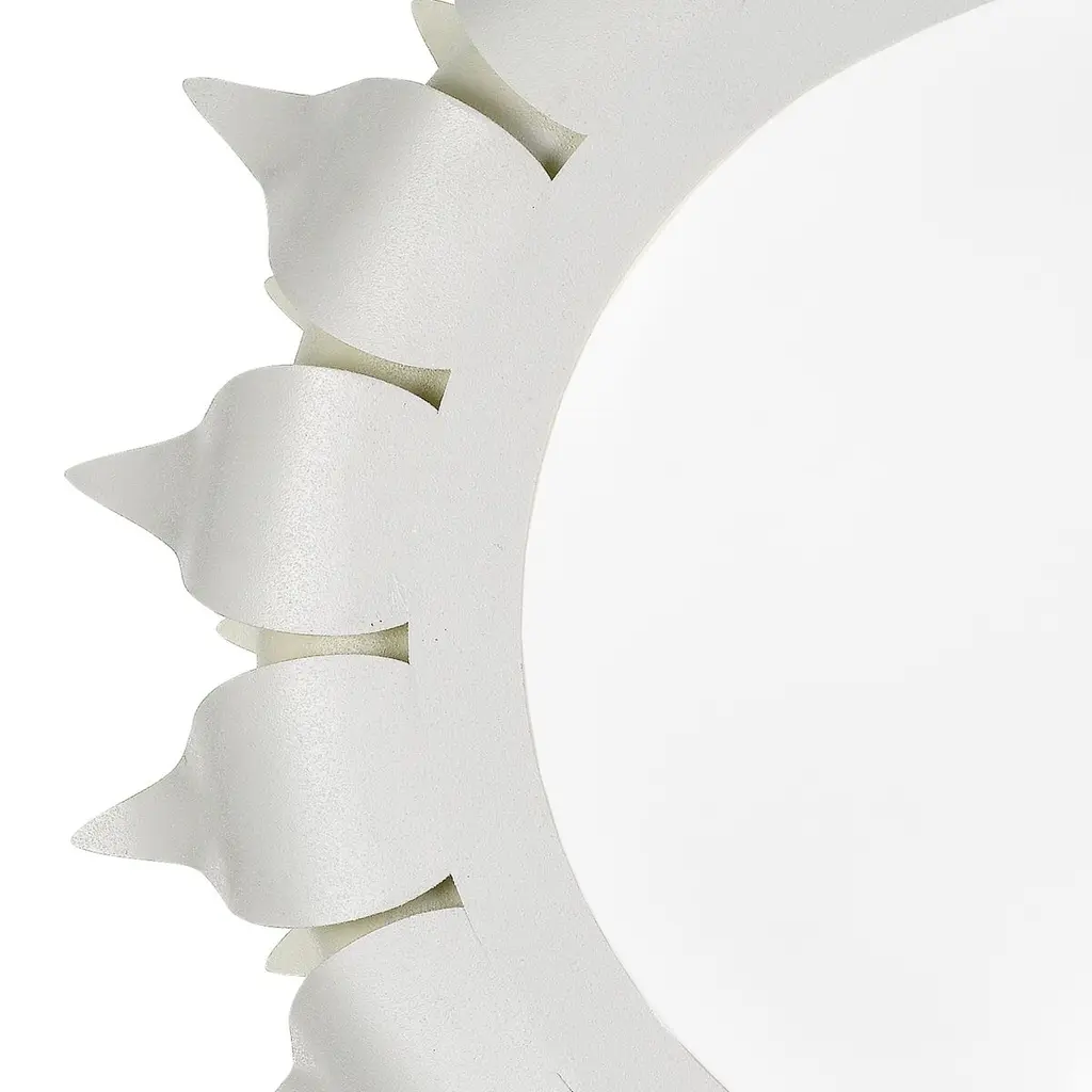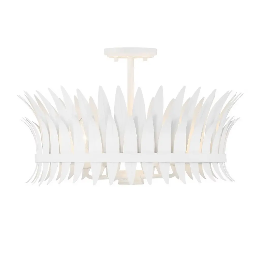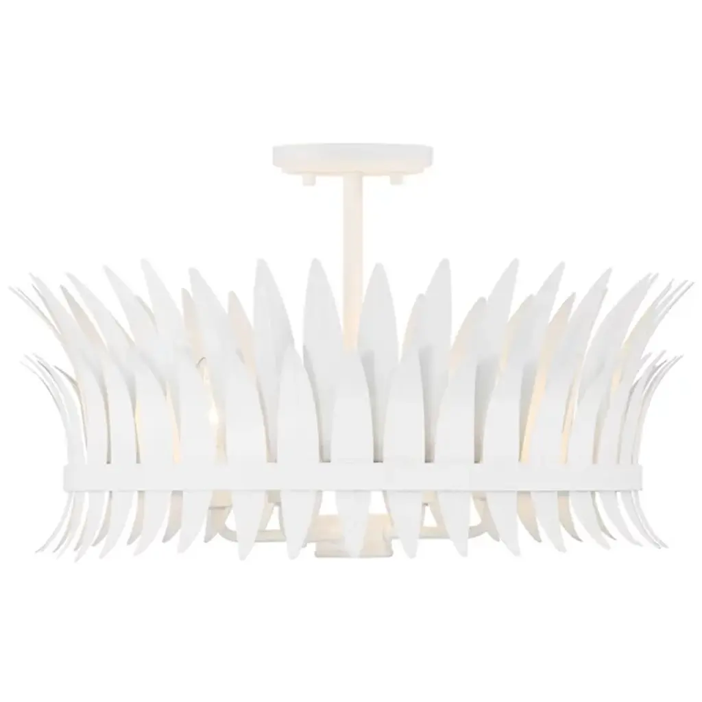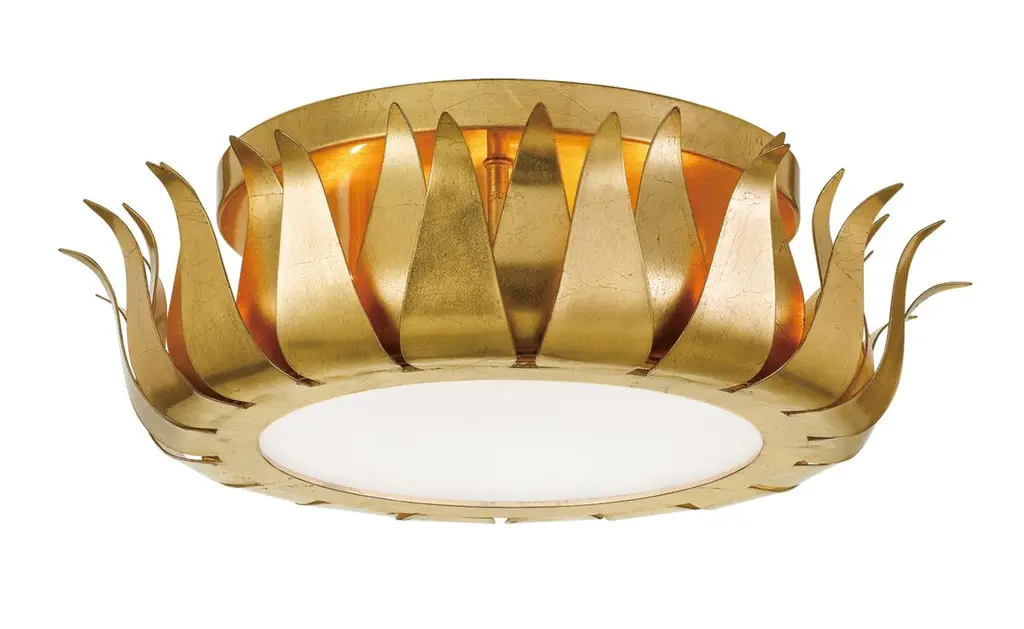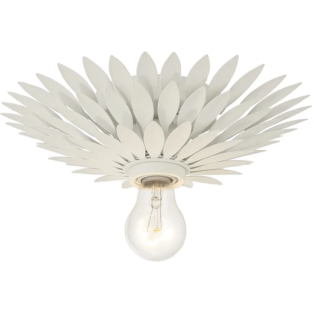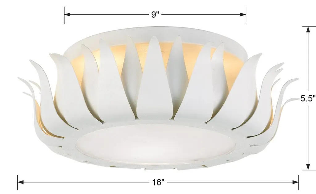 Blooming with beautiful petals, this wrought iron flush mount offers a sense of luxury and refinement to its surroundings. The frosted glass diffuser softens the light. Hardwired.