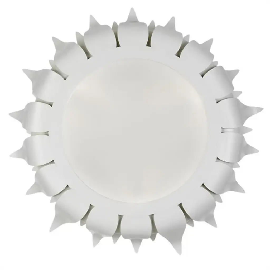 Inspired by a brooch found in a French flea market, the Broche Flushmount by Crystorama is an intricate display of transitional flair. Hand-painted wrought iron leaves sprout from its center and are wrapped in a metal foil and arranged in round tiers to form an alluring, reflective presentation. Soft, ambient light glows from atop the fixture, casting a warm glow that complements its metal sheen and making it an eye-catching addition to your home décor