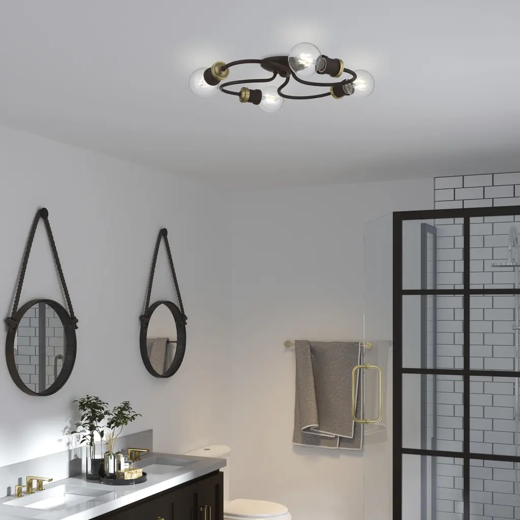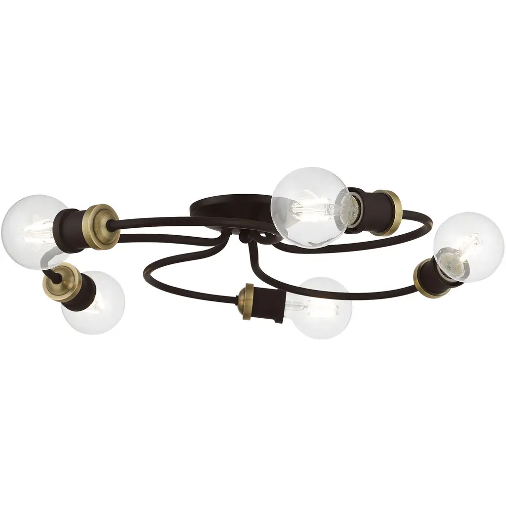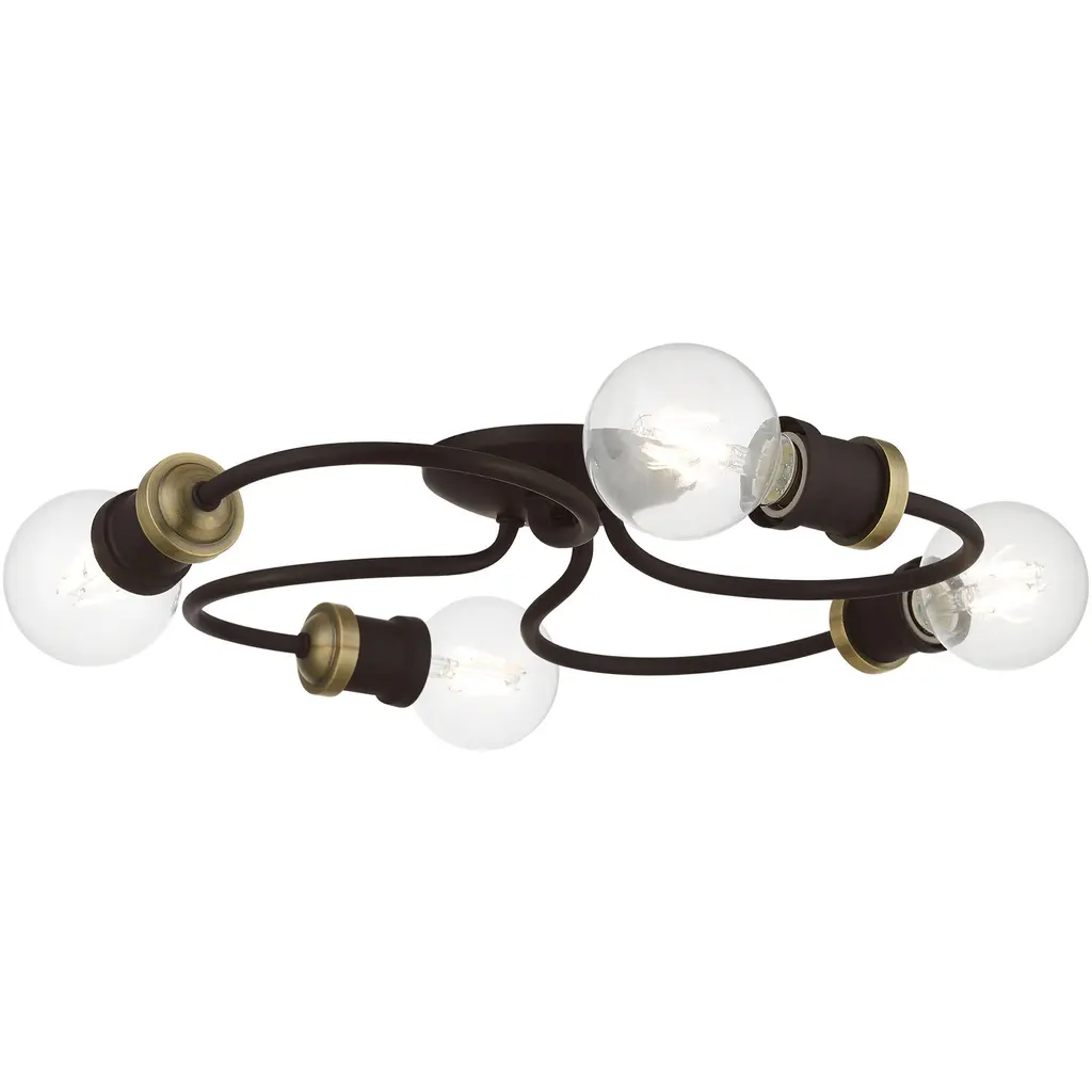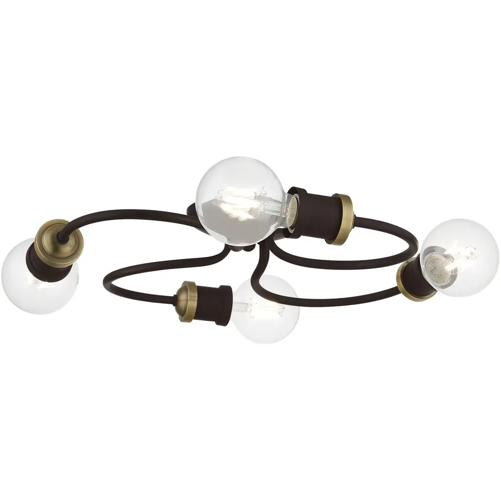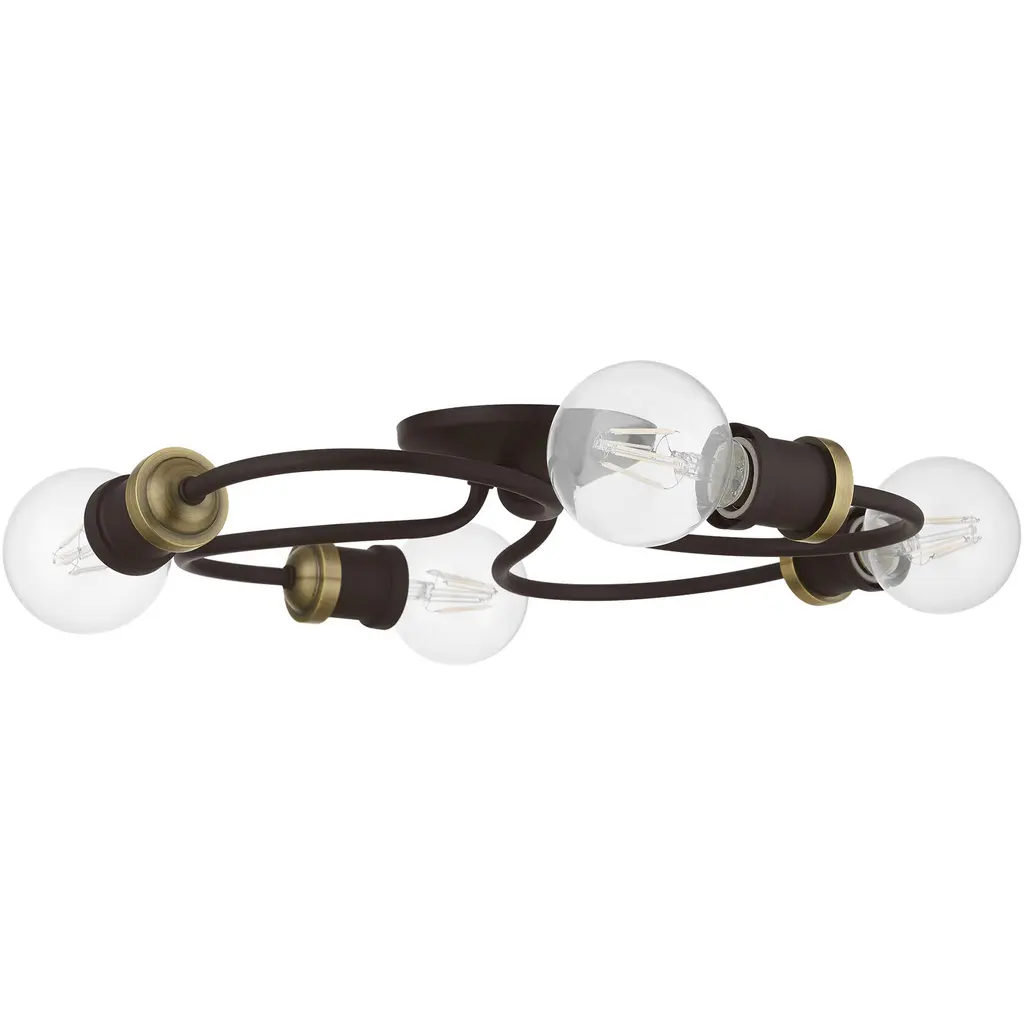 4 Light Bronze with Antique Brass Accents Large Flush Mount