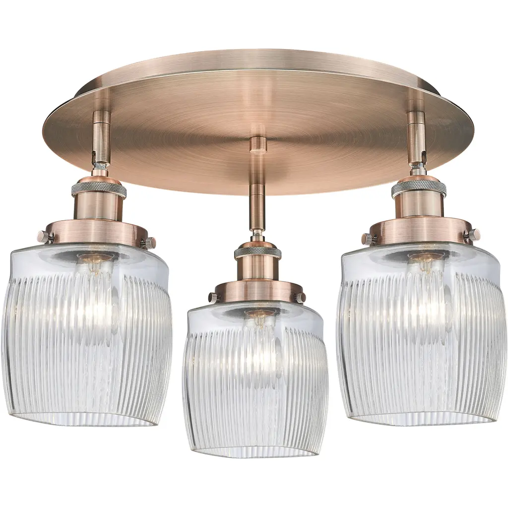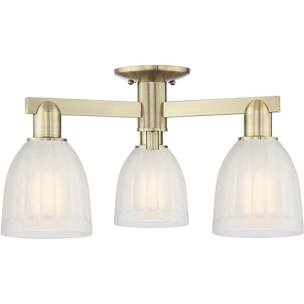 Brookfield 3 Light 17.5 Inch Antique Copper Flush Mount Ceiling Light In White