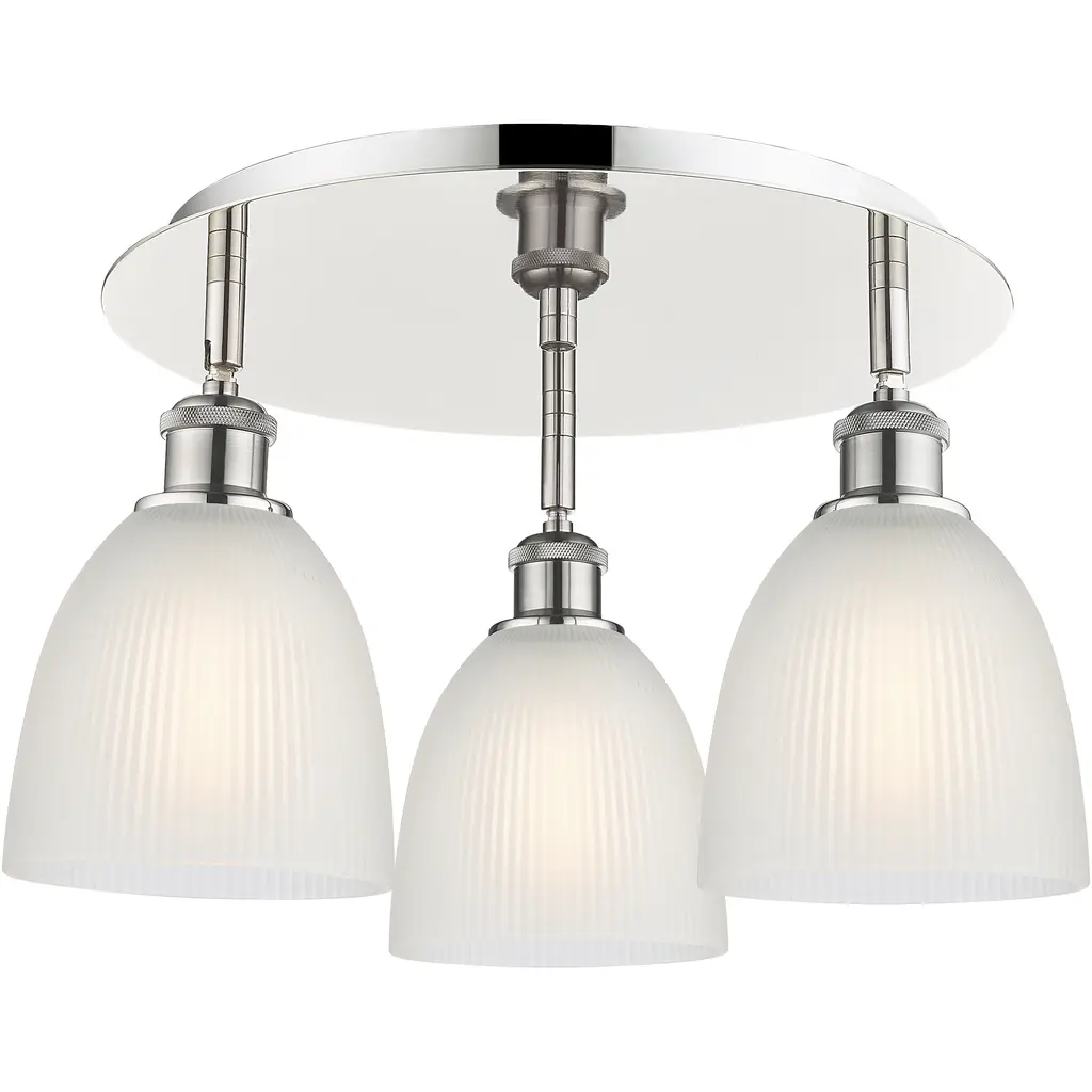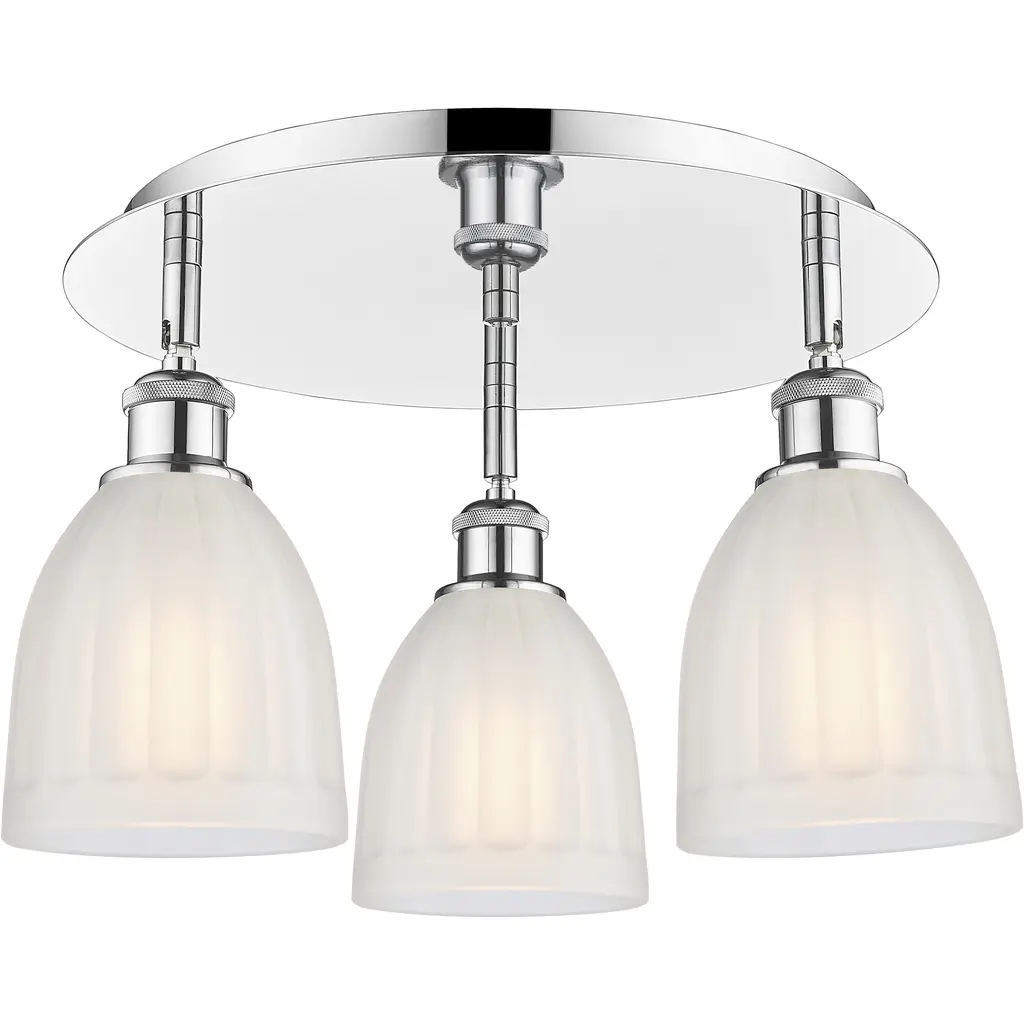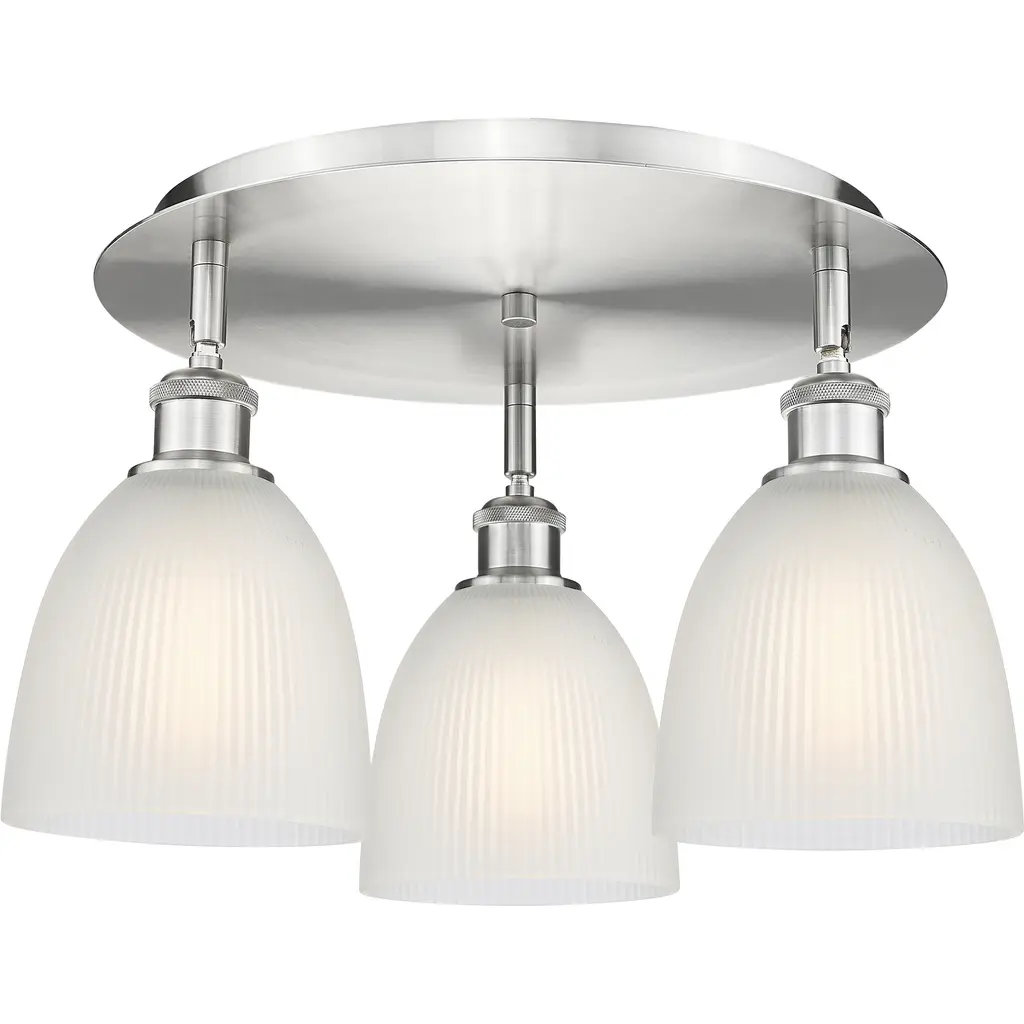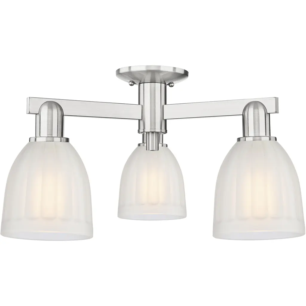 Brookfield 3 Light 17.5 Inch Satin Nickel Flush Mount Ceiling Light In White