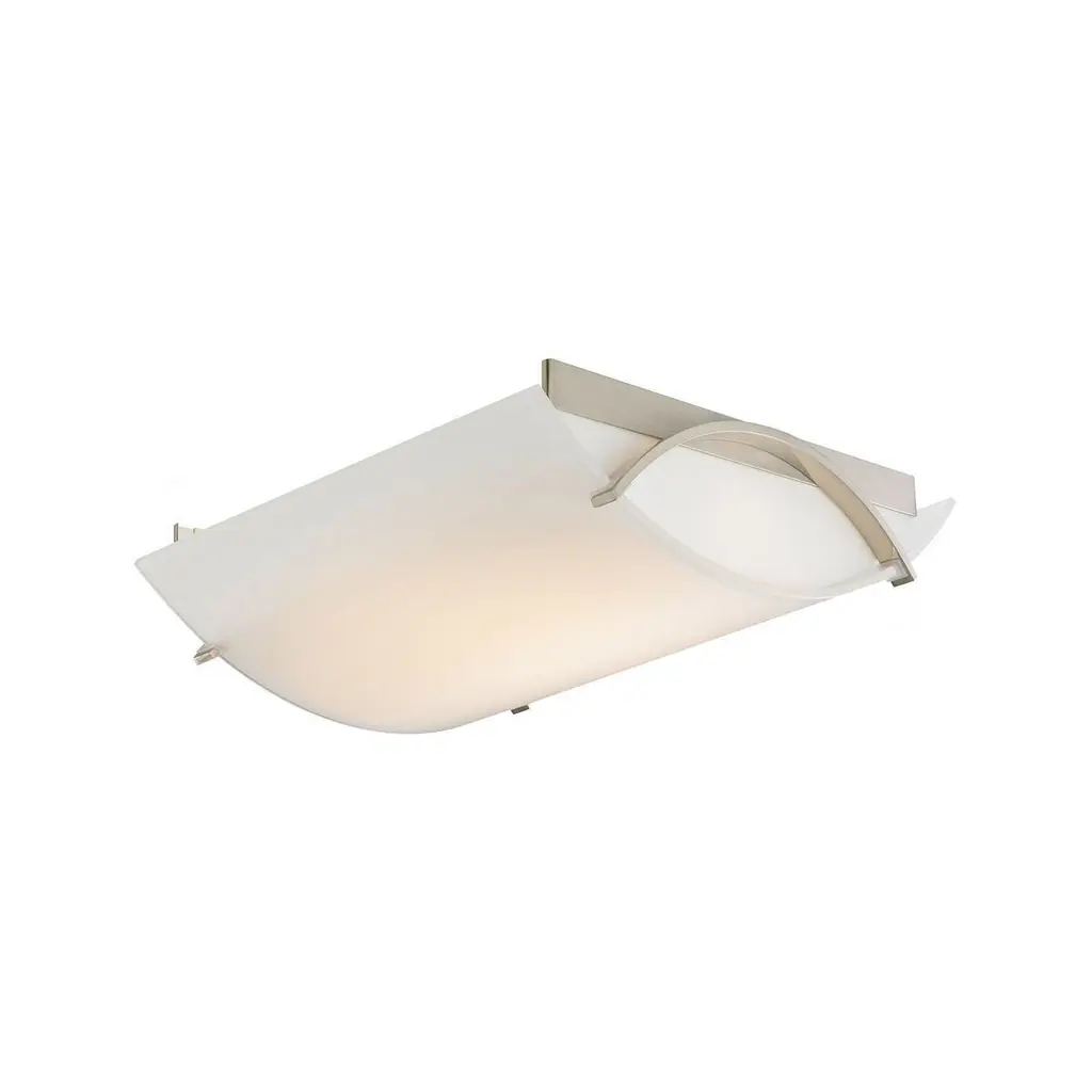 A clean, low-profile with soft, graceful edges. The Bryce Flushmount by Robert Abbey showcases a geometrical structure with clean lines and curved corners made of frosted glass. A metal crown laid over the cuboidal body enhances its visual appeal. Add three halogen lamps (sold separated) that diffuse through the shade to cast an ambient glow in the downwards direction. This damp-rated fixture is a welcome addition to modern or contemporary hallways, entryways, and bathrooms alike.