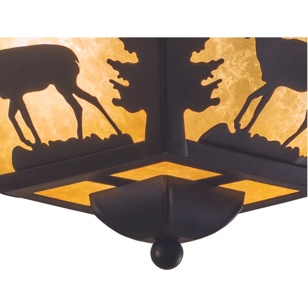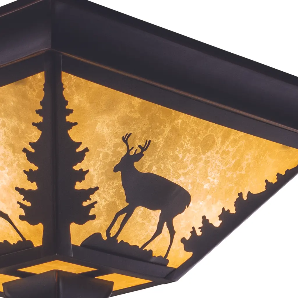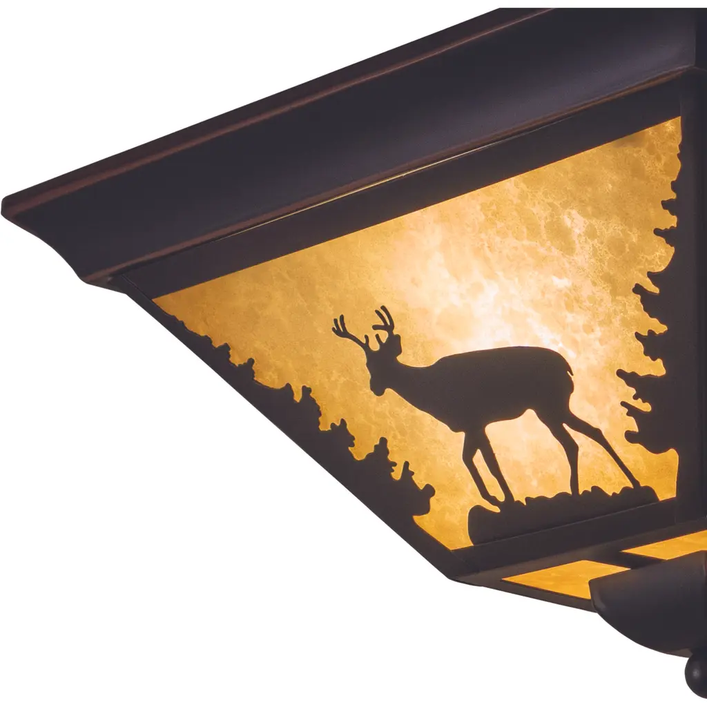 Evoking the spirit of the wilderness, this rustic themed light is clad in a burnished bronze finish and features silhouetted deer imagery atop glowing white tiffany style glass. The classic form of this lamp makes it a great choice for a vacation lodge, cabin or a suburban home - it will complement a variety of home styles: anywhere you want to bring an element of nature. Medium screw base lamping provides maximum light output, and flexibility in bulb choice.