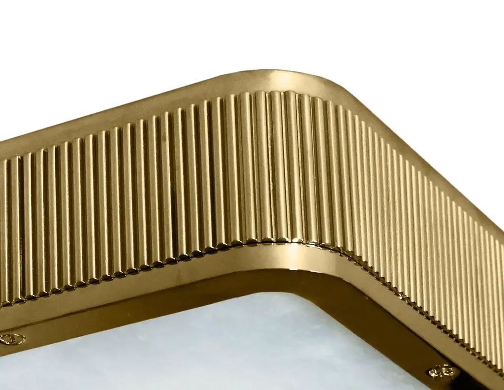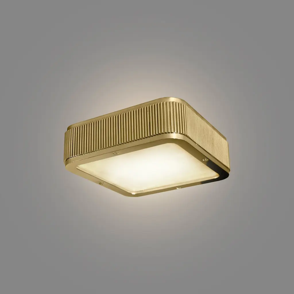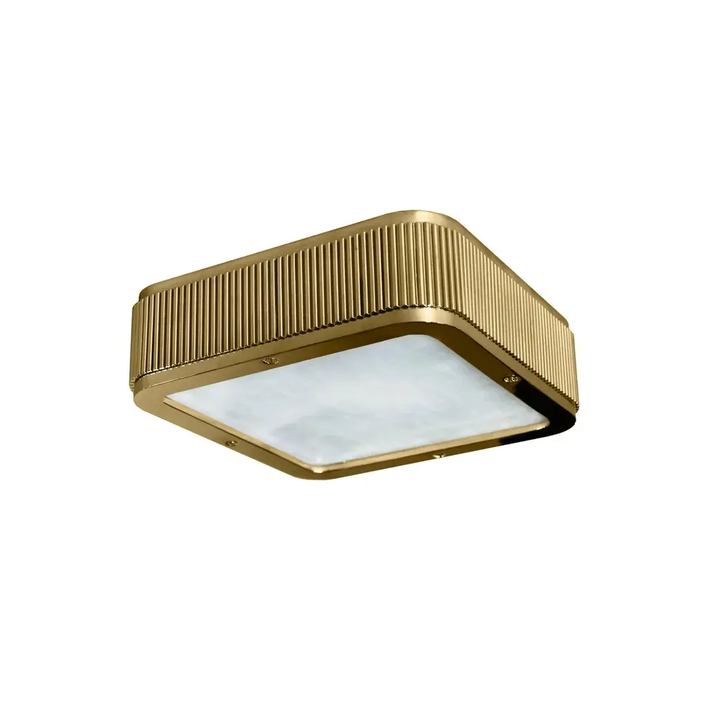 BSO8 flush mount with rock crystal panel, polished brass frame. Created by Phoenix.Custom size and finish upon request.Three E12 sockets installed, 180w total.Please message to check availability. The standard lead time is 5-6 weeks.