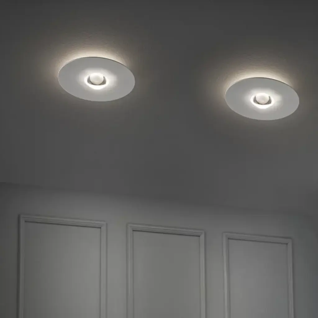 Venice-based LODES's over half a century of tradition creating dazzling lighting experiences hits another high point with their spirited and sophisticated Bugia LED Single Flushmount. The piece is one the studio uses to highlight the marvelous visuals that are realized when you combine indirect and direct illumination in one sharp construction. A glance at its geometrically perfect silhouette quickly communicates the versatility in its shape across the home. The disc face plate permeates a soft aura of LED light across its surface. On the other hand, a plexiglass dome at the center sparkles with highlights as a focused, direct light penetrates its reflective surface.
