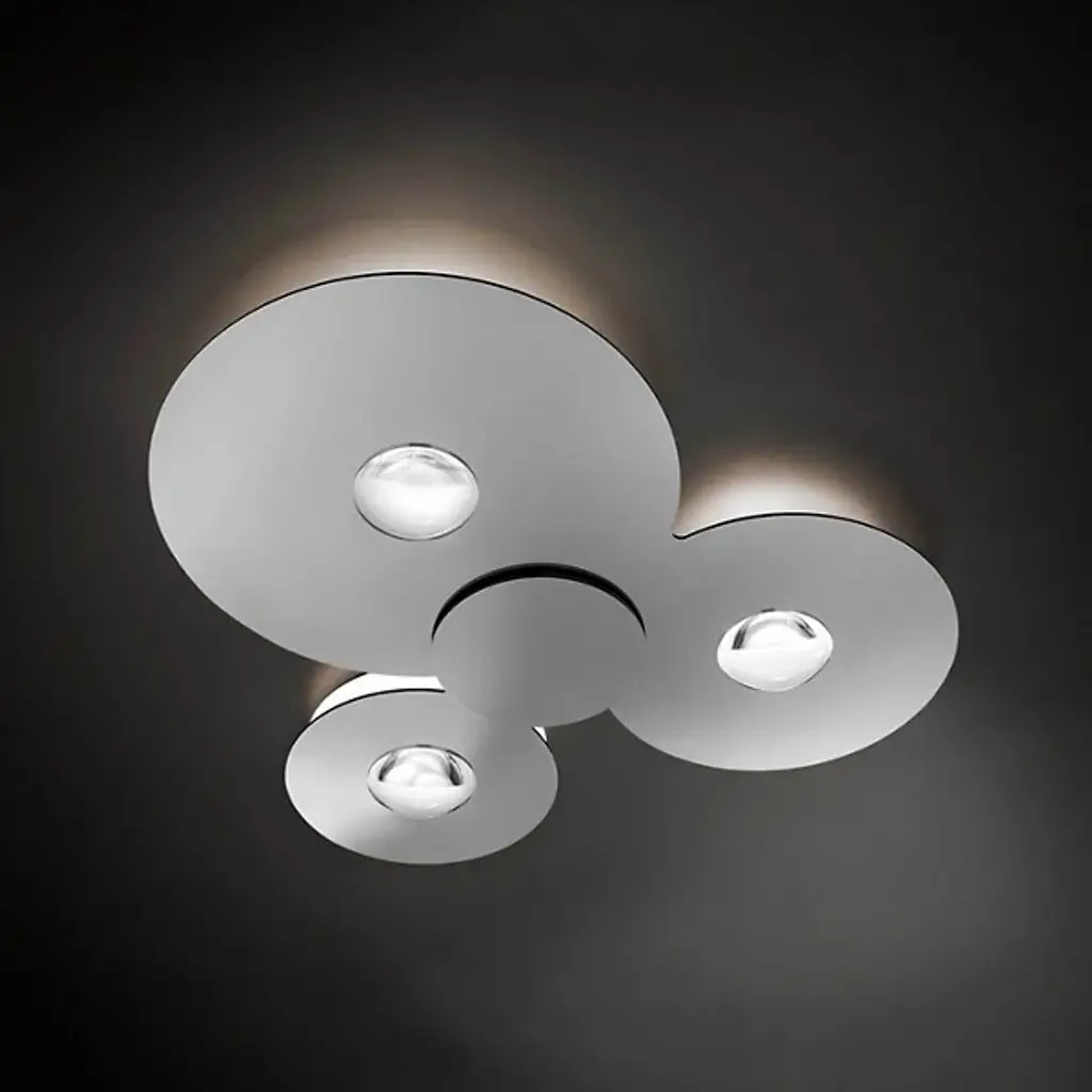The Bugia Mega LED Flushmount by Lodes is a sleek and elegant design. Created by Studio Italia Designs, the compact, slender, and round form of this piece is dressed up with a beautiful finish, surrounding a minimalistic crystal lens that casts a direct layer of illumination onto surroundings. Above the form of this fixture, an opaline polycarbonate diffuser releases a layer of indirect light that spills out onto the ceiling and surroundings, creating an enchanting effect that is captivating.